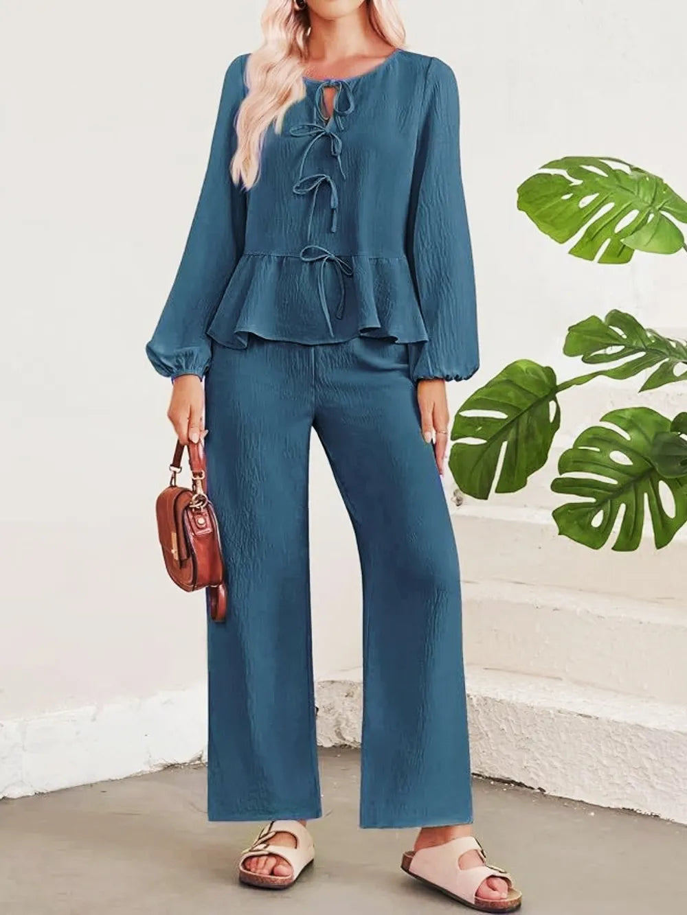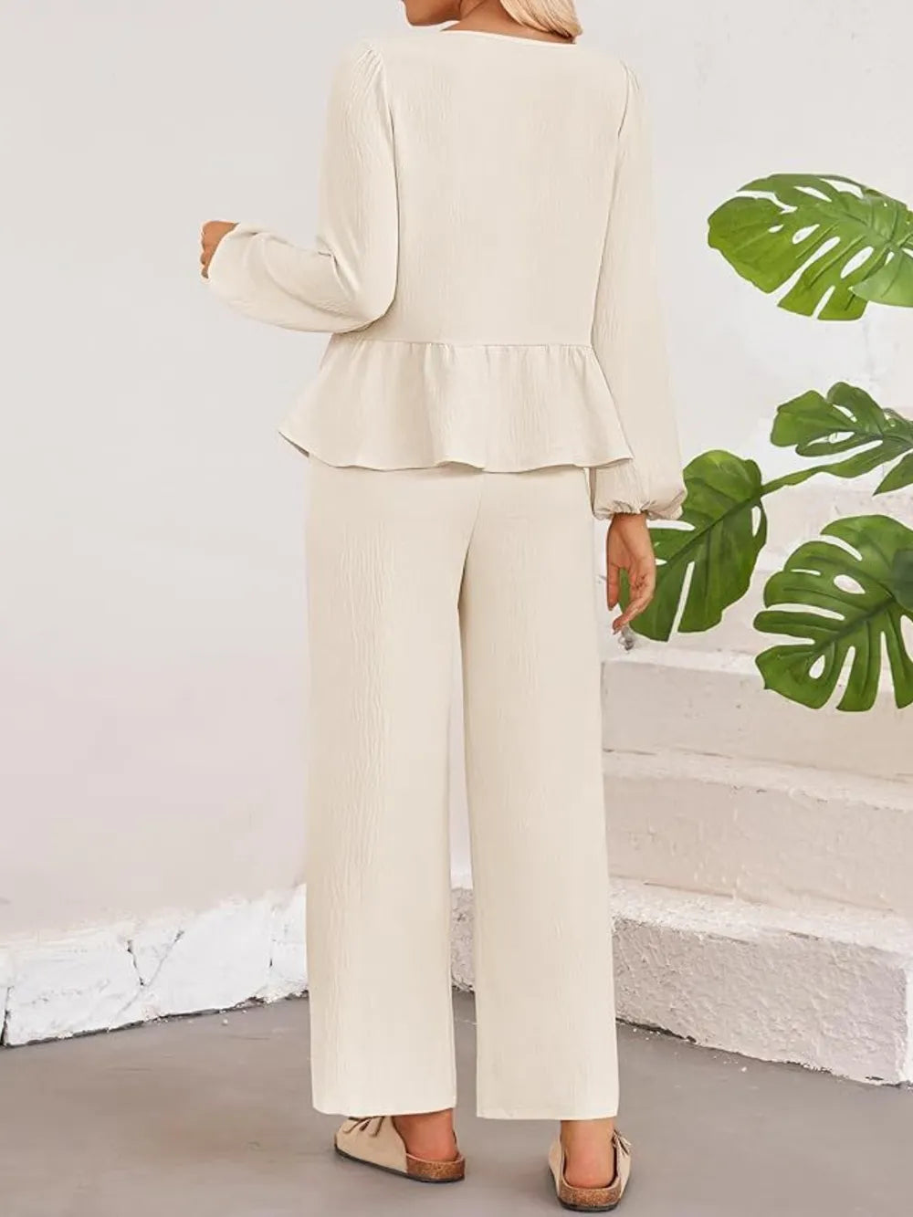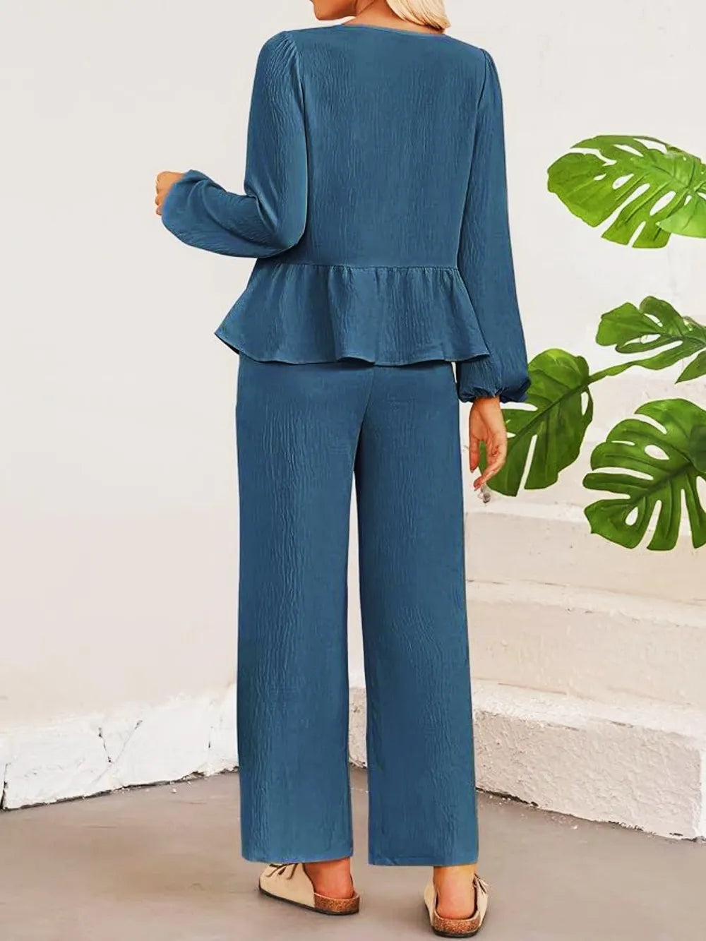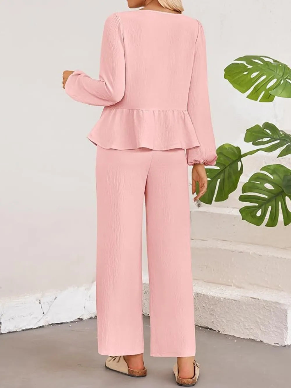 Printed Button Up Long Sleeve Top and Pants Lounge Set