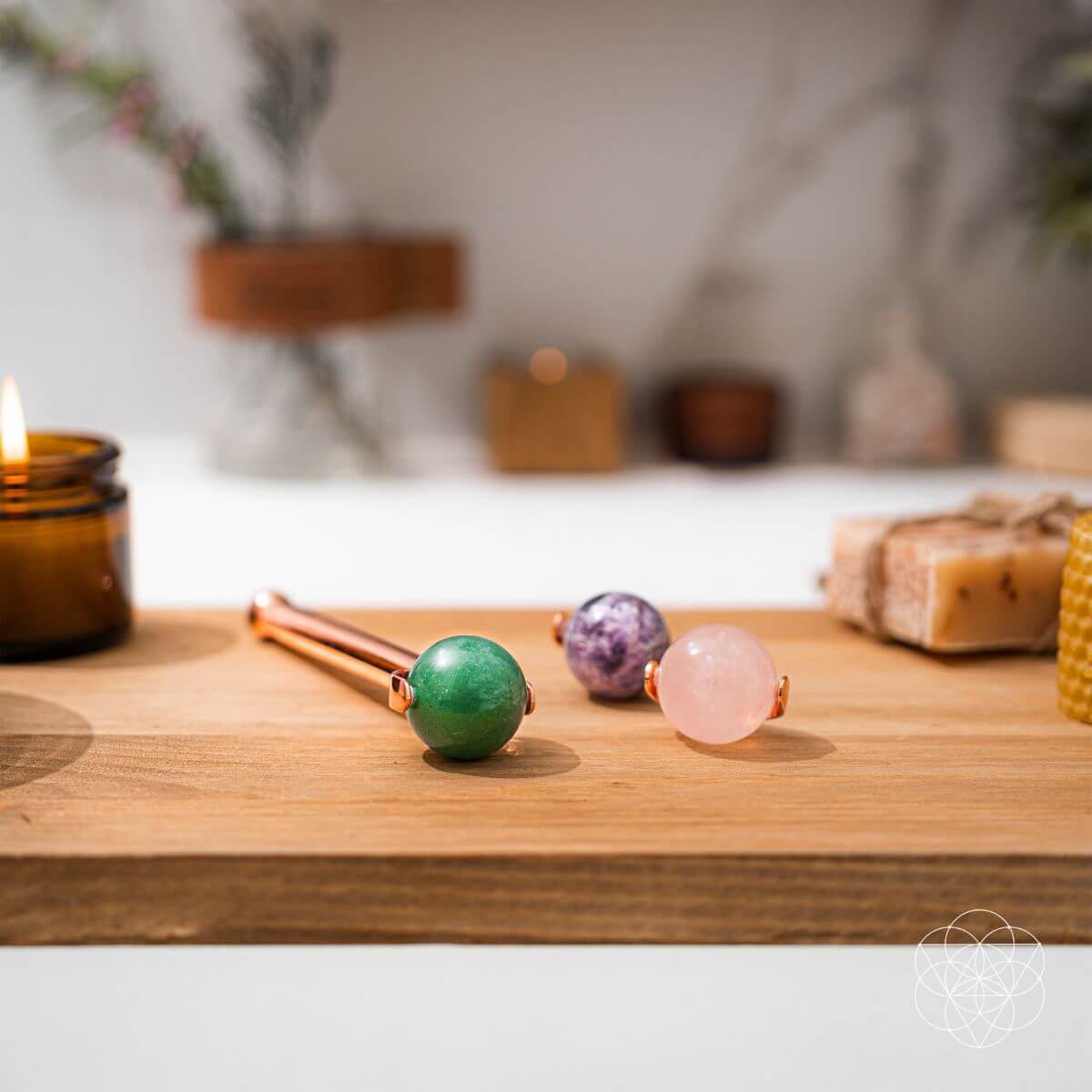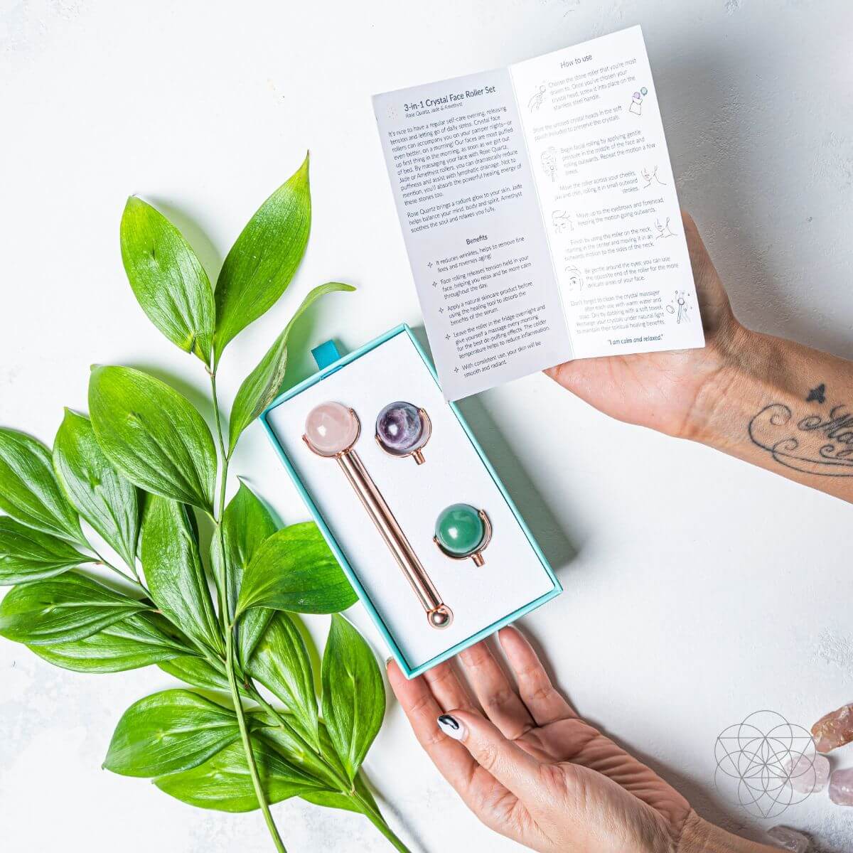 This facial roller has an interchangeable head with three stone rollers included. Firstly, a Rose Quartz face roller which radiates your skin. Secondly, a Jade facial roller that balances your energy, evening out your spiritual body as well as your skin. Finally, an Amethyst facial roller that has a calming effect on the mind, body and spirit.