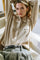 A washed waffle knit top featuring shirt collar, button down, front pockets and long sleeve. Matching pant FP1126