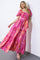 Indulge in the exquisite elegance of this luxurious printed woven maxi dress. Boasting a square neckline, short puff sleeves, and a smocked bodice, this dress also features a self sash tie and a beautifully flowing tiered skirt.
