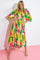 A printed woven midi dress featuring square neckline, long sleeve and double elasticized waist
