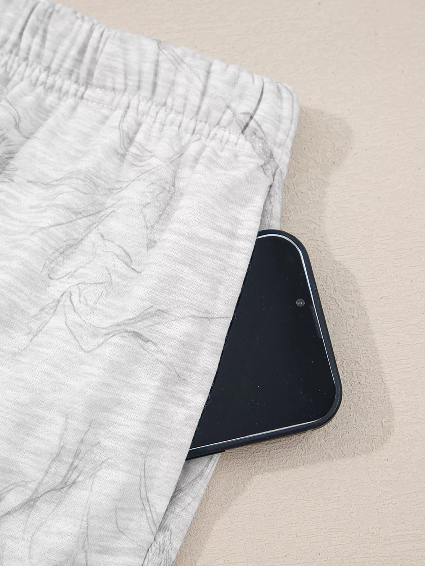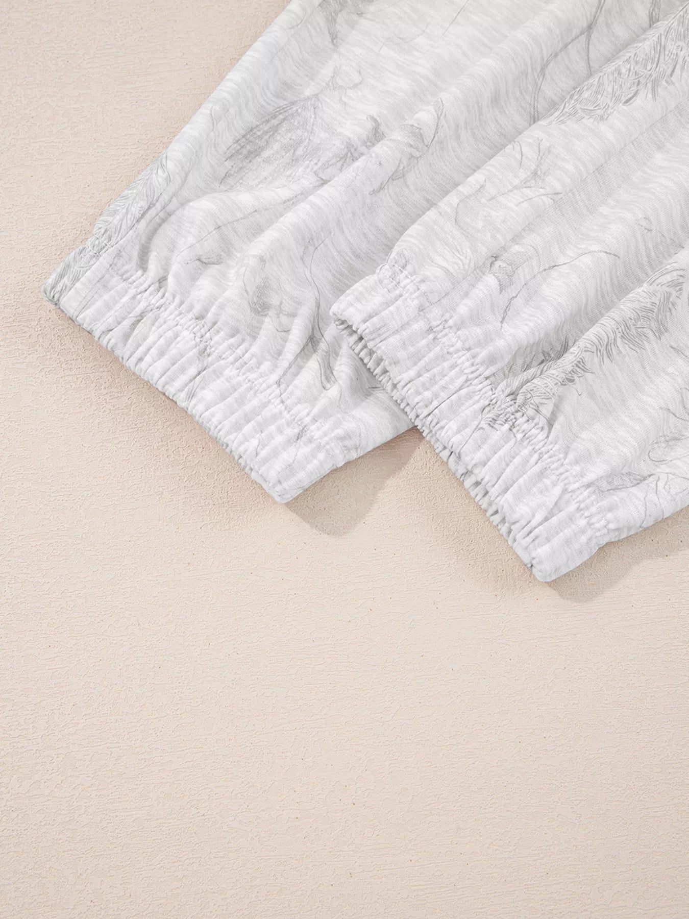 Abstract Print Loose Drop Sleeve Hoodie and Elastic Waistband Pants Set