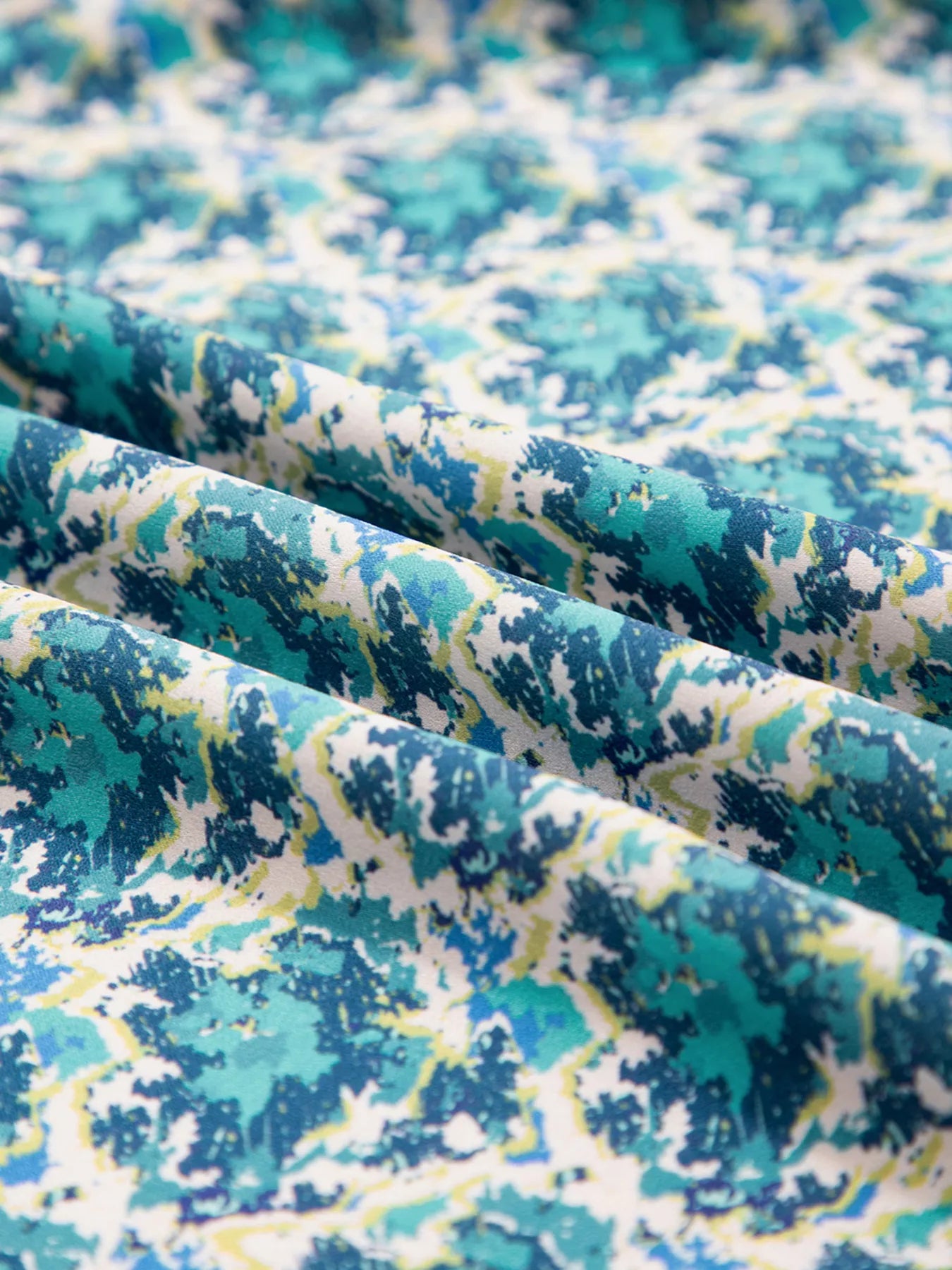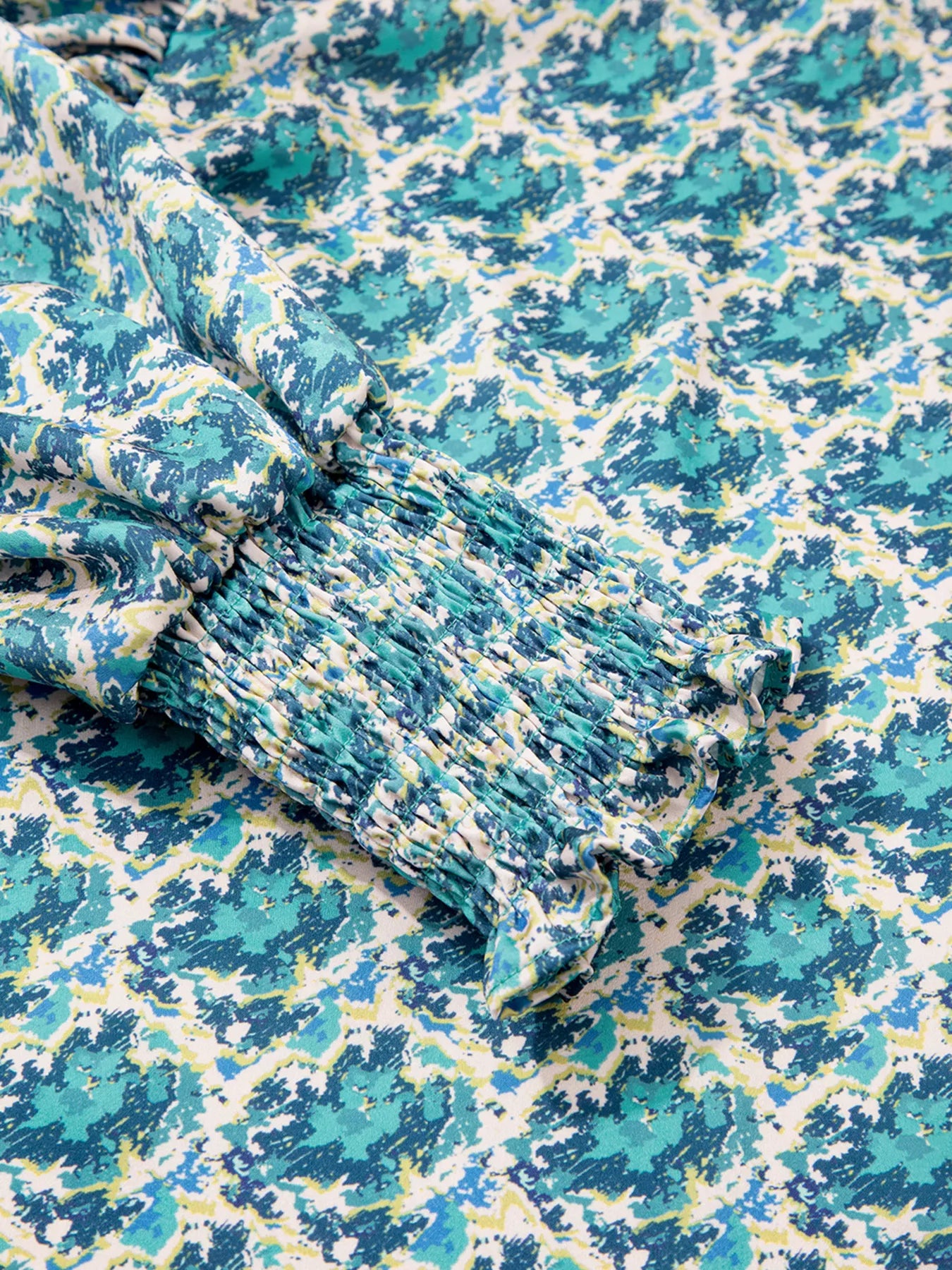 Abstract Print Shirred Cuff Ruffled Puff Sleeve Blouse