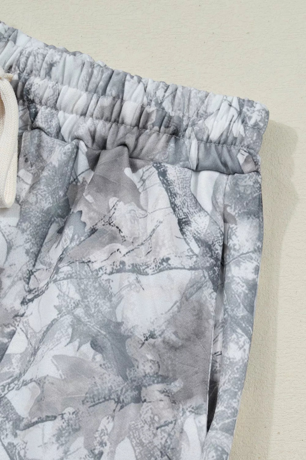 Abstract Woodland Camo Print Baggy Pullover Drawstring Shorts Set