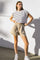 An acid washed twill short featuring front closure, side pockets and pleated front