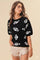 This stylish football print pullover sweater features a comfortable knit construction with an all-over football pattern on a classic black background. The relaxed fit design offers excellent comfort and mobility, while the round neckline and short sleeves provide a casual, sporty aesthetic. Made from soft, breathable fabric that's perfect for everyday wear, this pullover combines athletic-inspired style with feminine comfort. The eye-catching football motifs make it ideal for game day, casual outings, or showing team spirit. Easy care and versatile styling options make this pullover a must-have addition to any sports enthusiast's wardrobe.