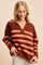 The striped sweater top with collar stitched details is a chic and sophisticated addition to your wardrobe. The striped pattern adds a timeless touch, while the collar stitched details elevate the design with a polished look. This sweater top is perfect for both casual and semi-formal occasions. Stay cozy and stylish with the comfortable fabric and classic stripes. Make a fashion statement with this striped sweater top that exudes elegance and charm.