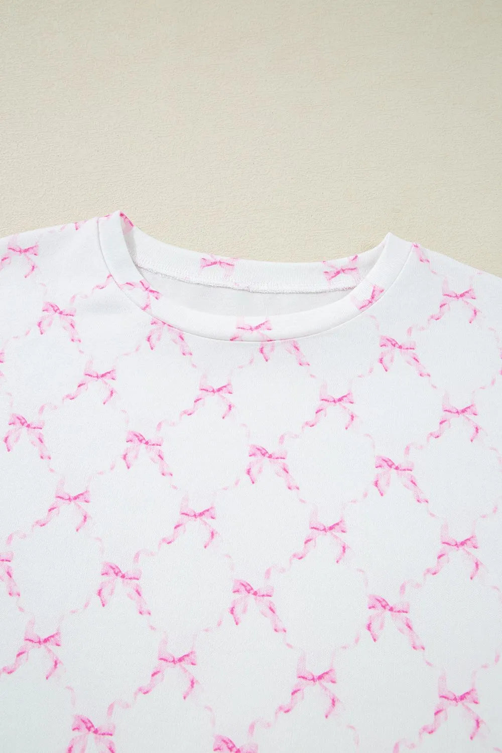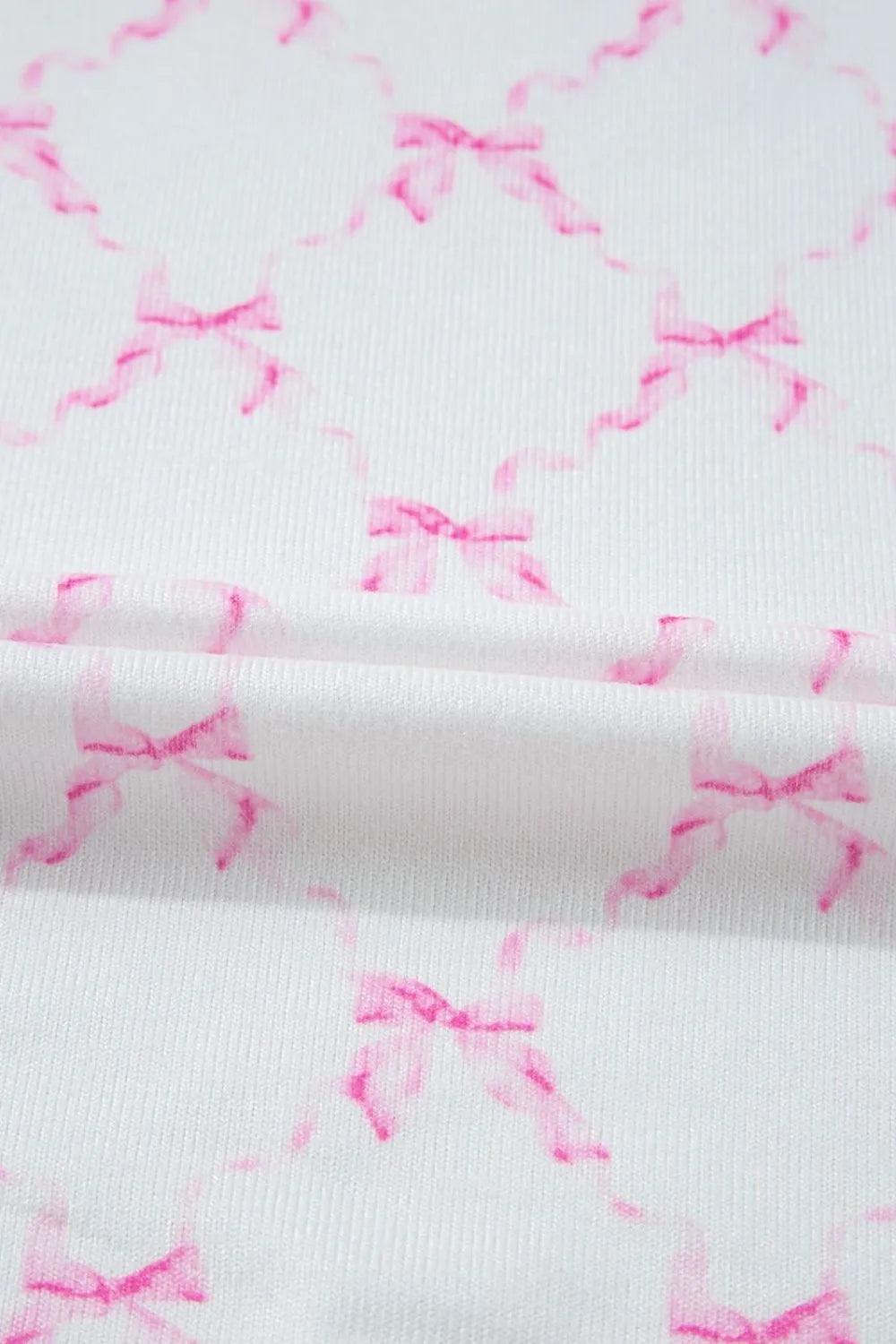 Bow Print Lettuce Trim Round Neck Top and Shorts Lounge Set