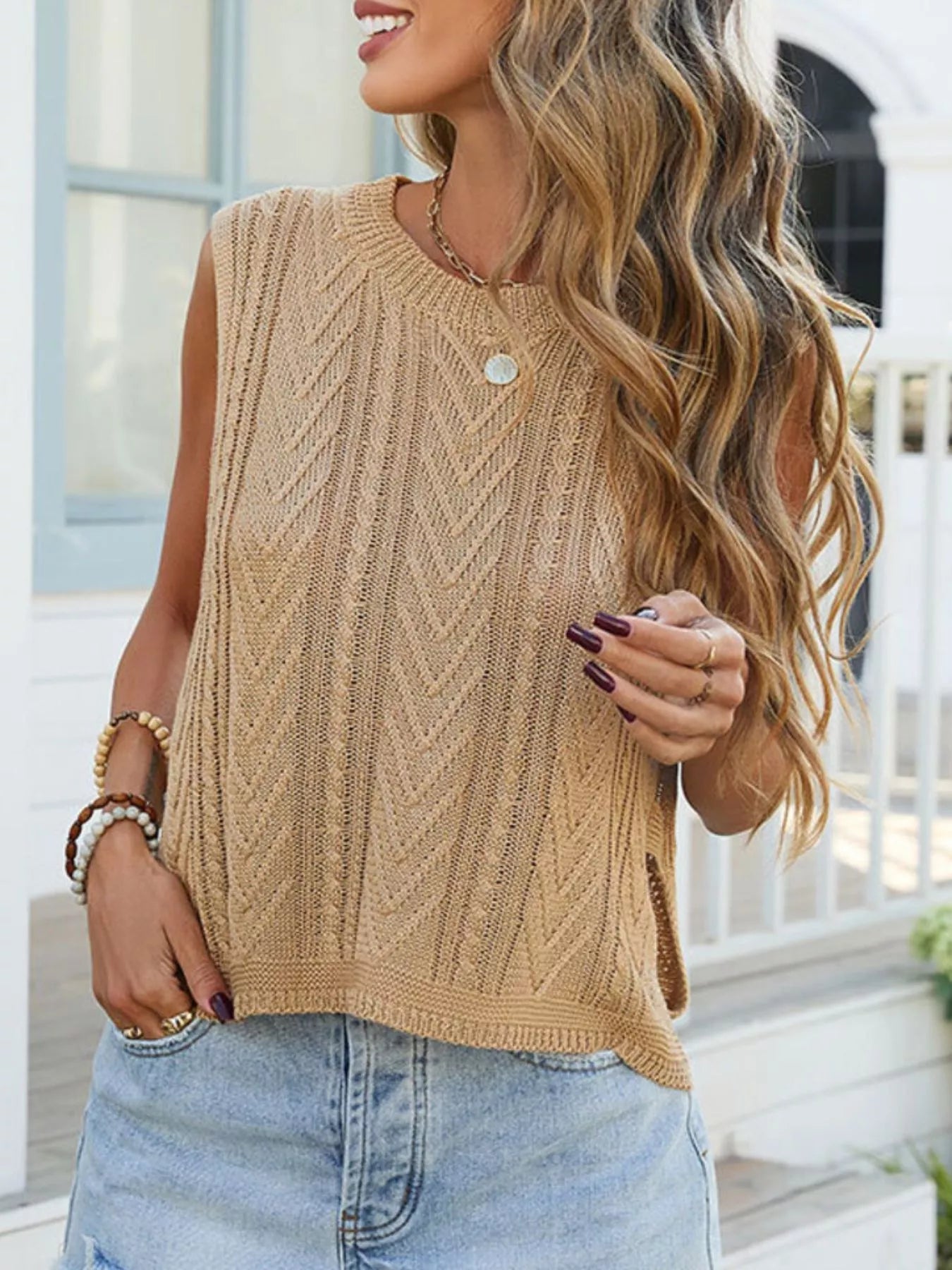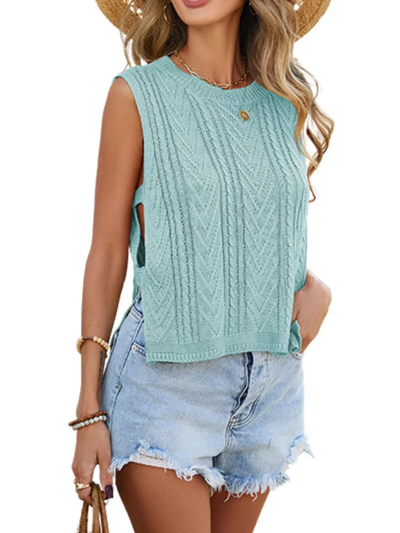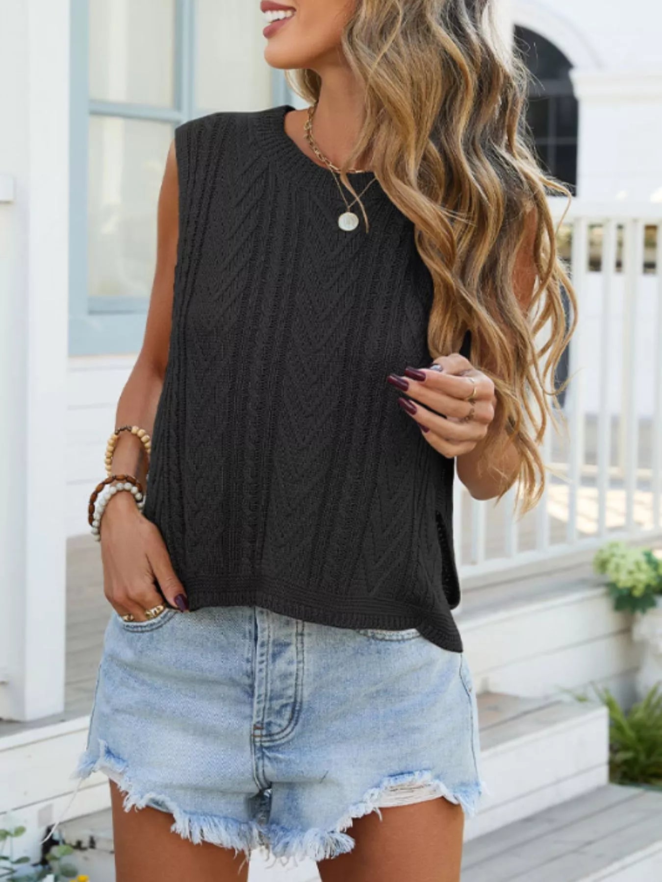 Cable Knit Round Neck Sweater Vest