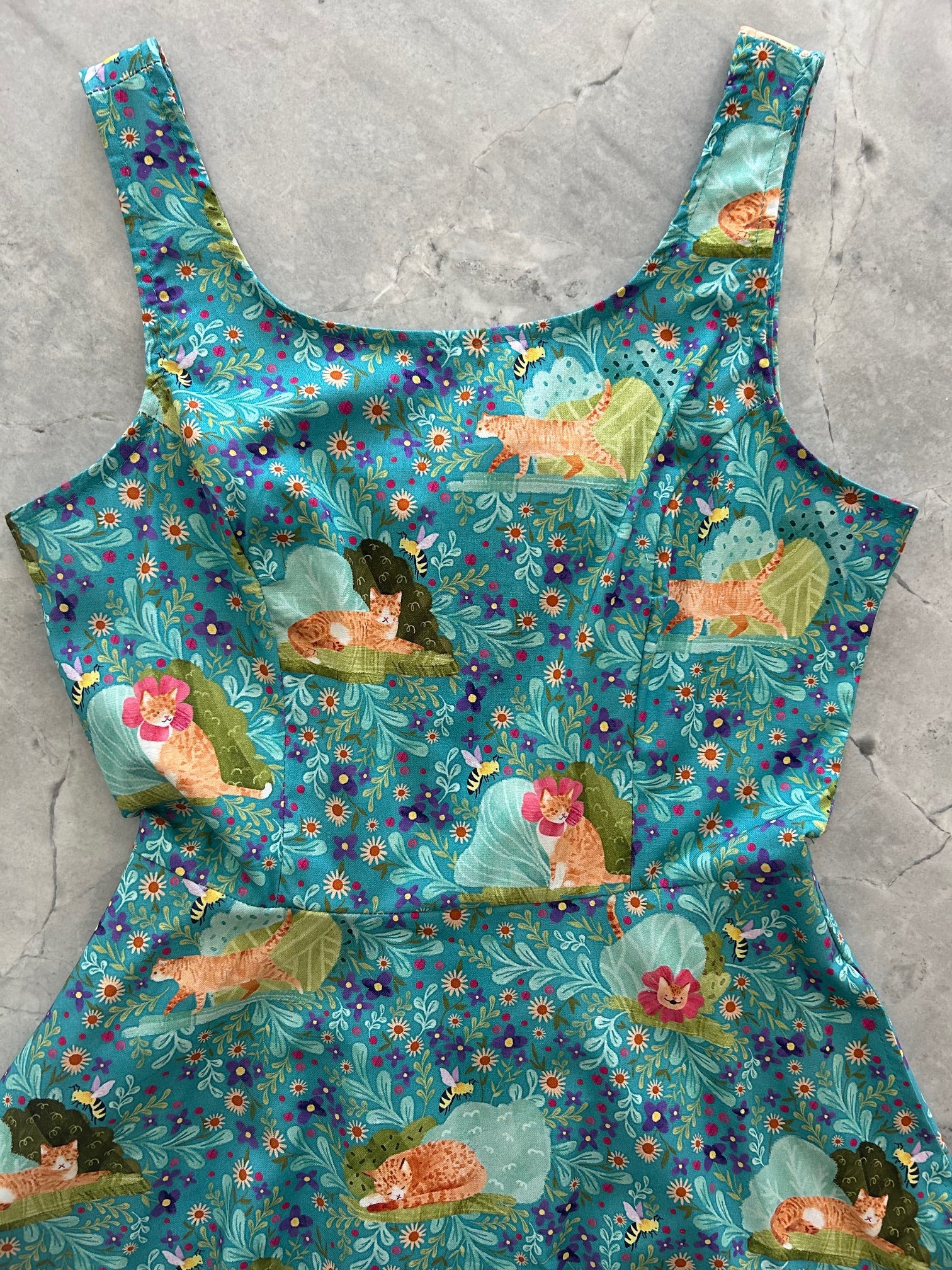 Fun, flirty, and totally retro: our skater dress is the perfect addition to your closet! Shown in our whimsical Cats print, this vintage inspired dress features a scoop front and back, elasticized waist in the back for ease of wear, a flirty a-line skirt with hidden side pockets, and a back zippered closure.