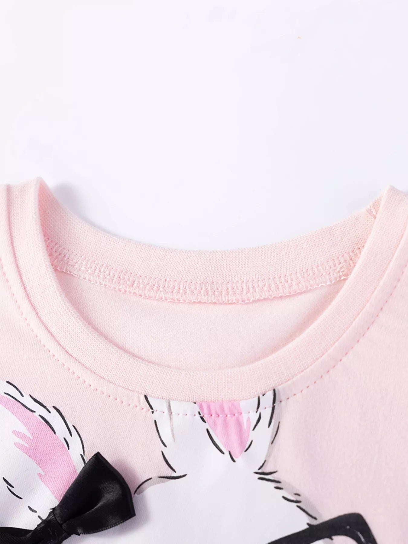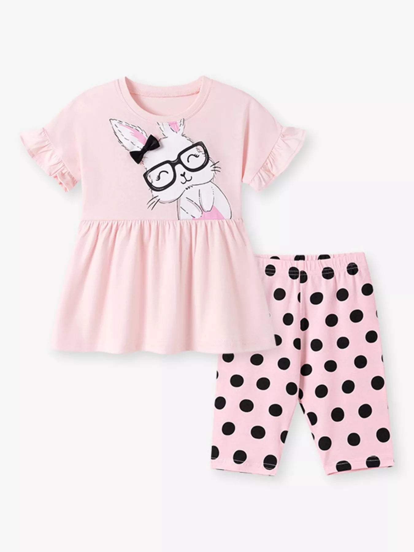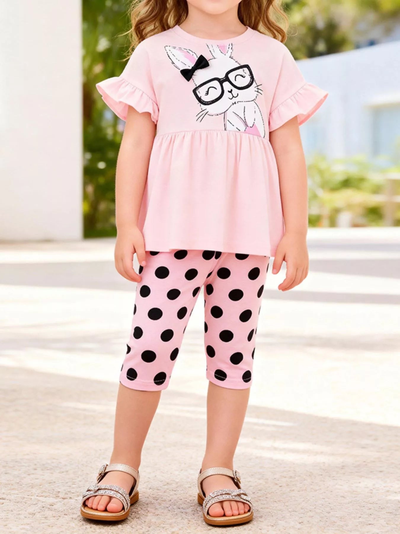Children's Bunny Graphic Ruffle Sleeve Top & Polka Dot Capri Set