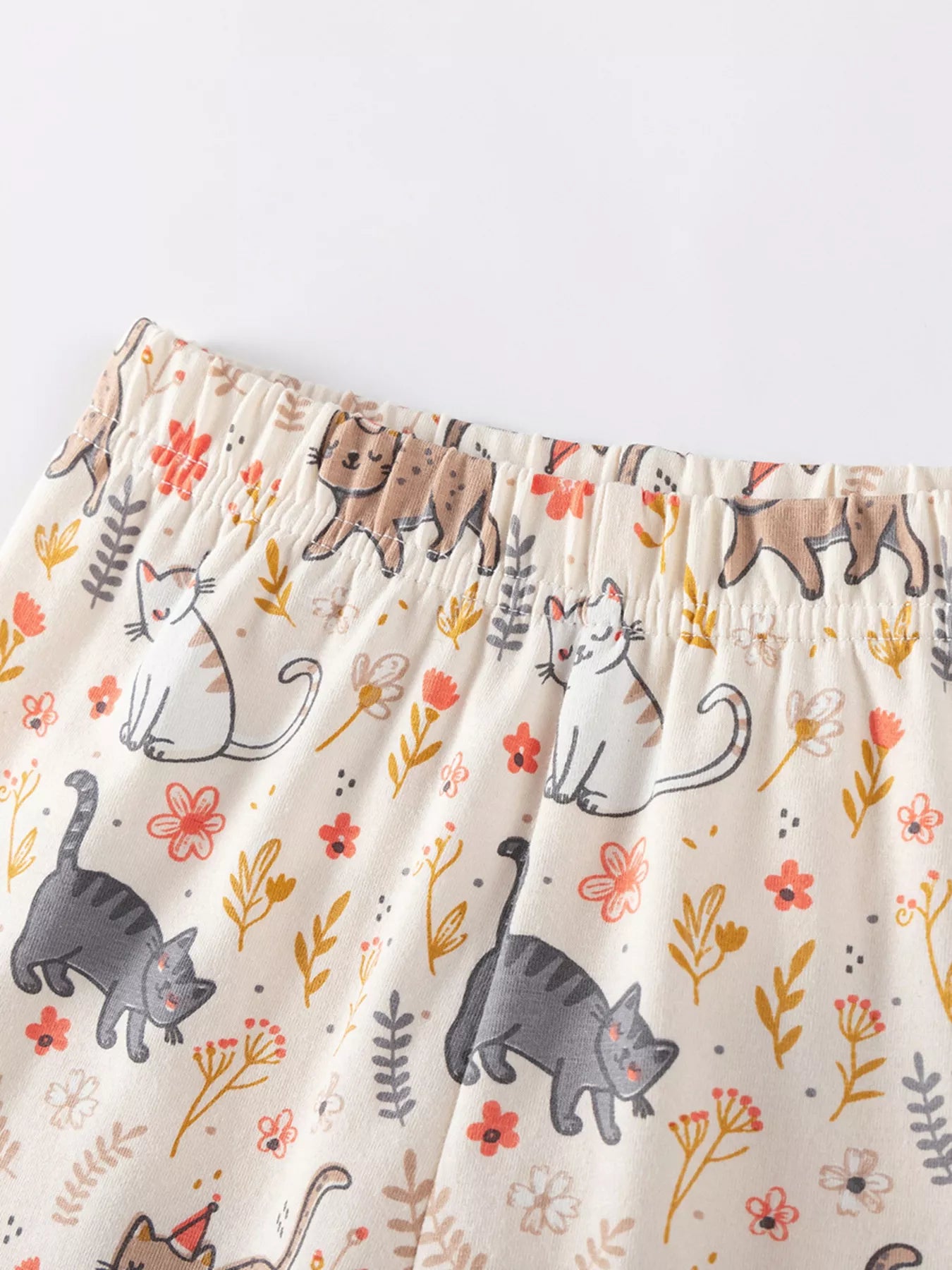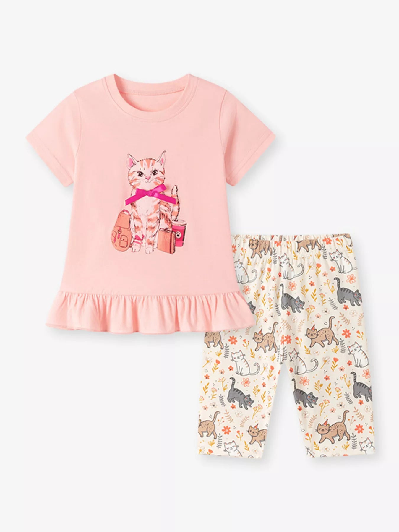 Children's Cat Ruffled Hem Tee and Shorts Set