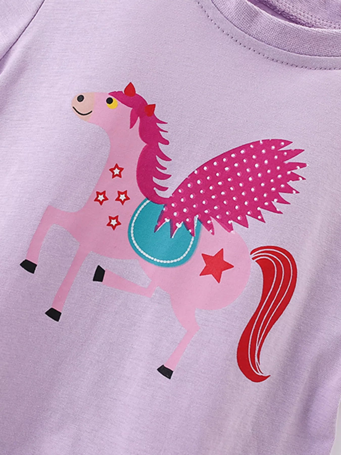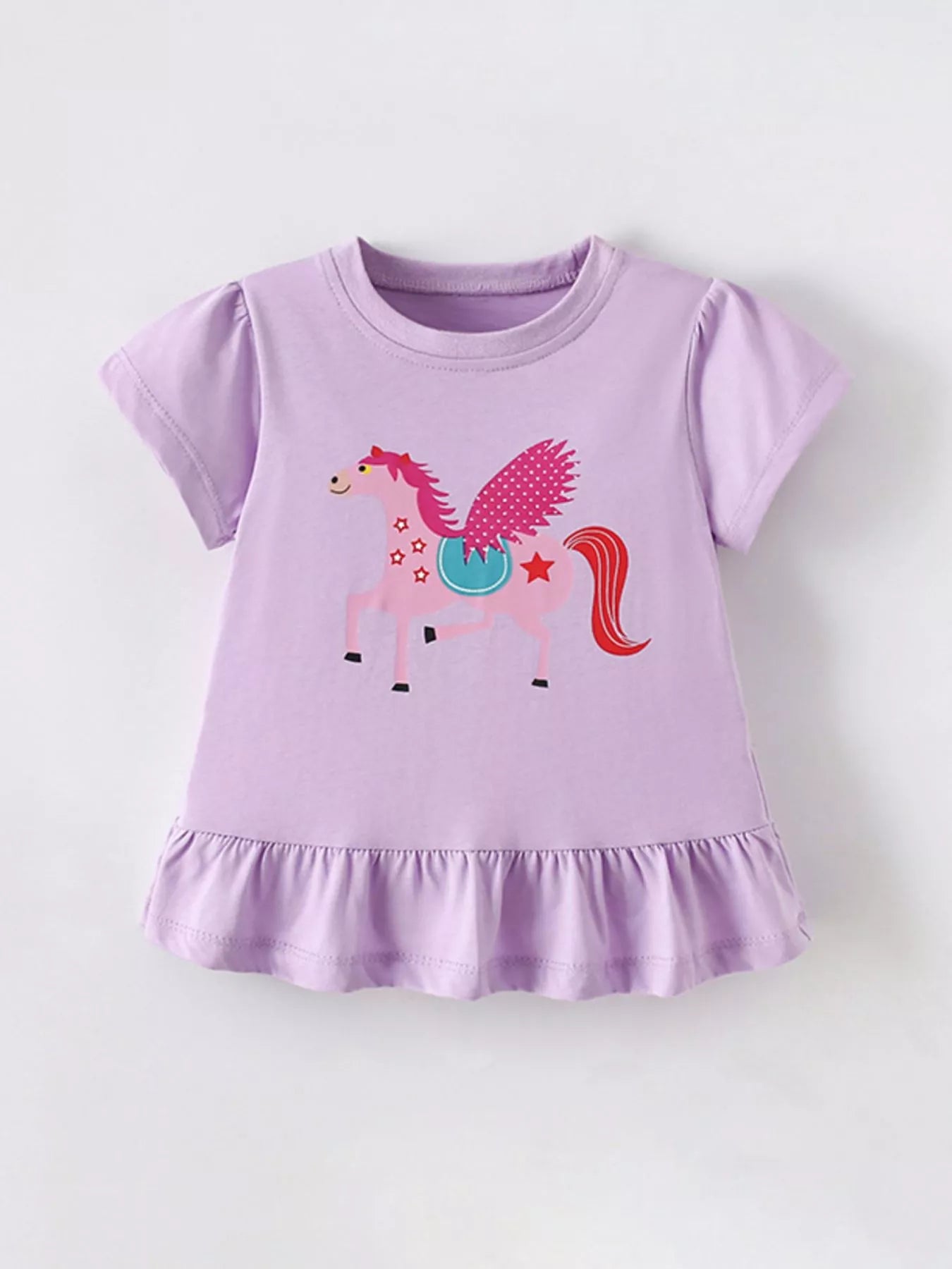 Children's Cute Cartoon Horse Graphic Top with Ruffle Hem