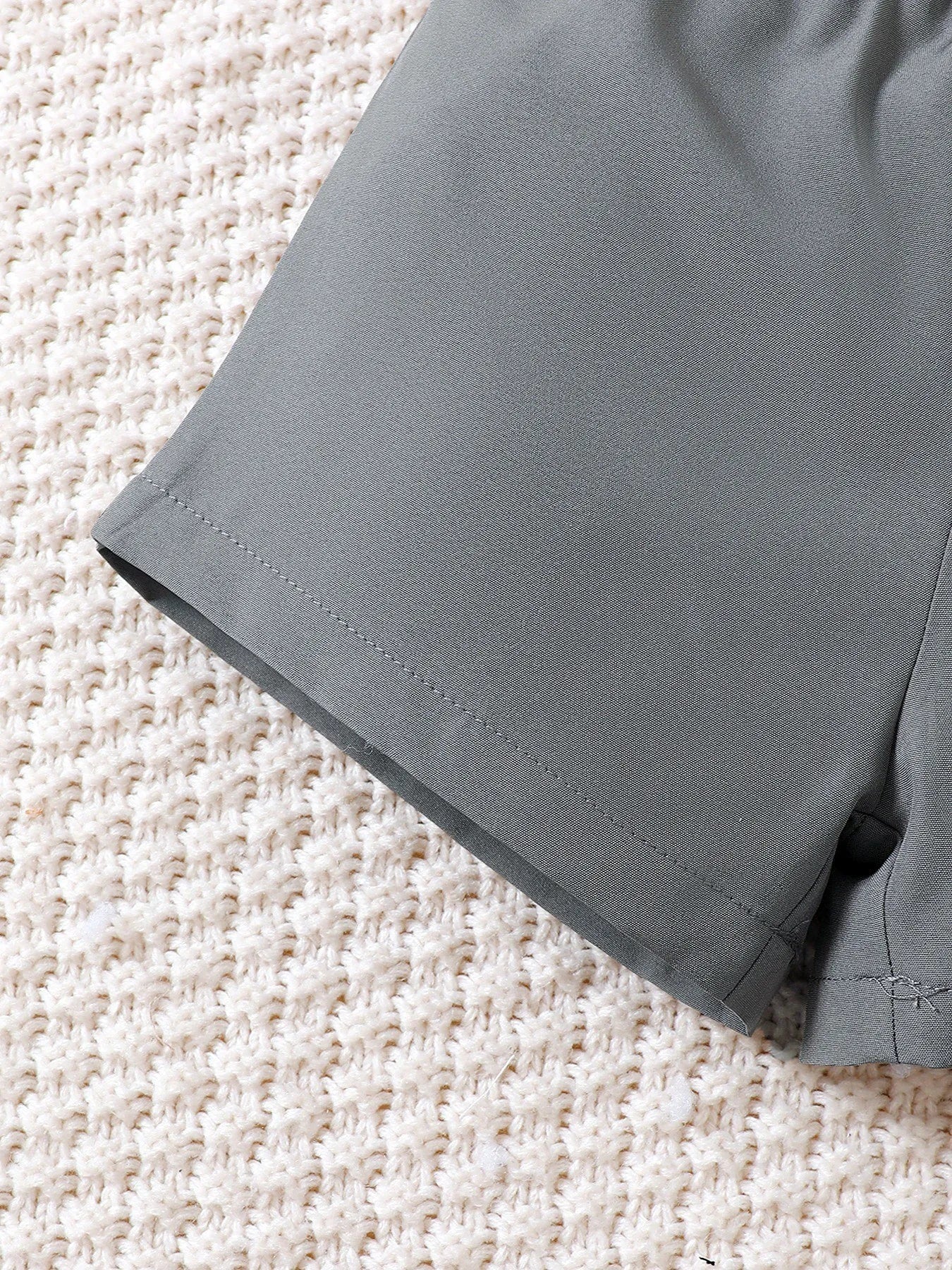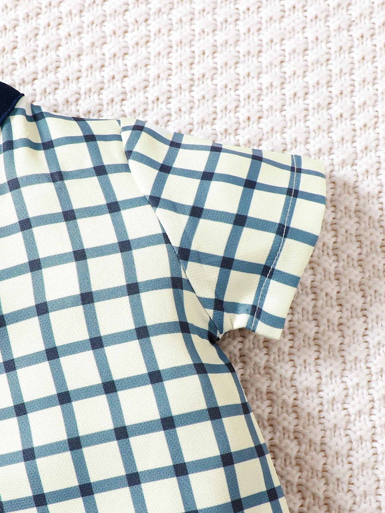 Children's Hat Dinosaur Plaid Button Up Top and Shorts 3-Piece Set