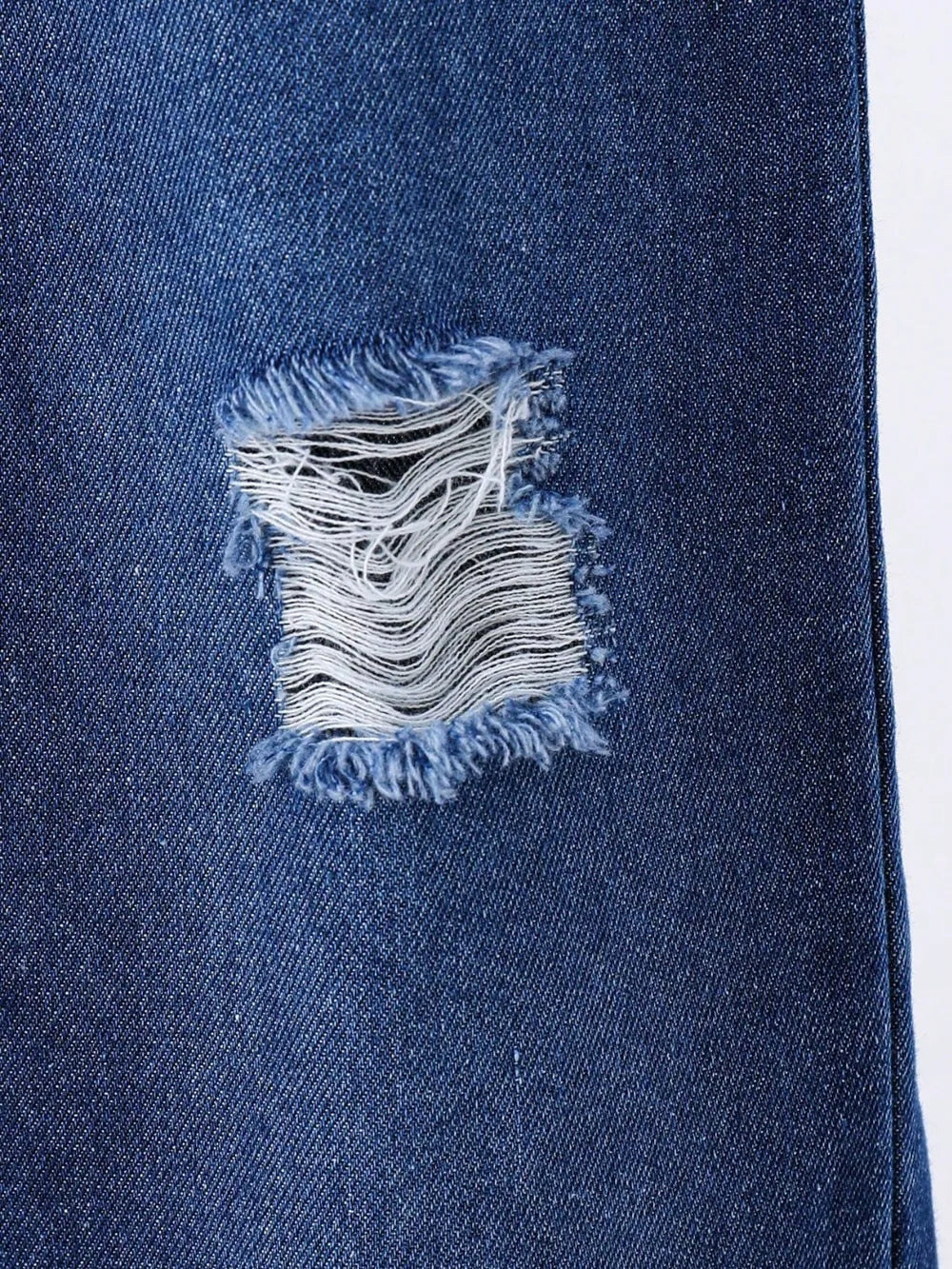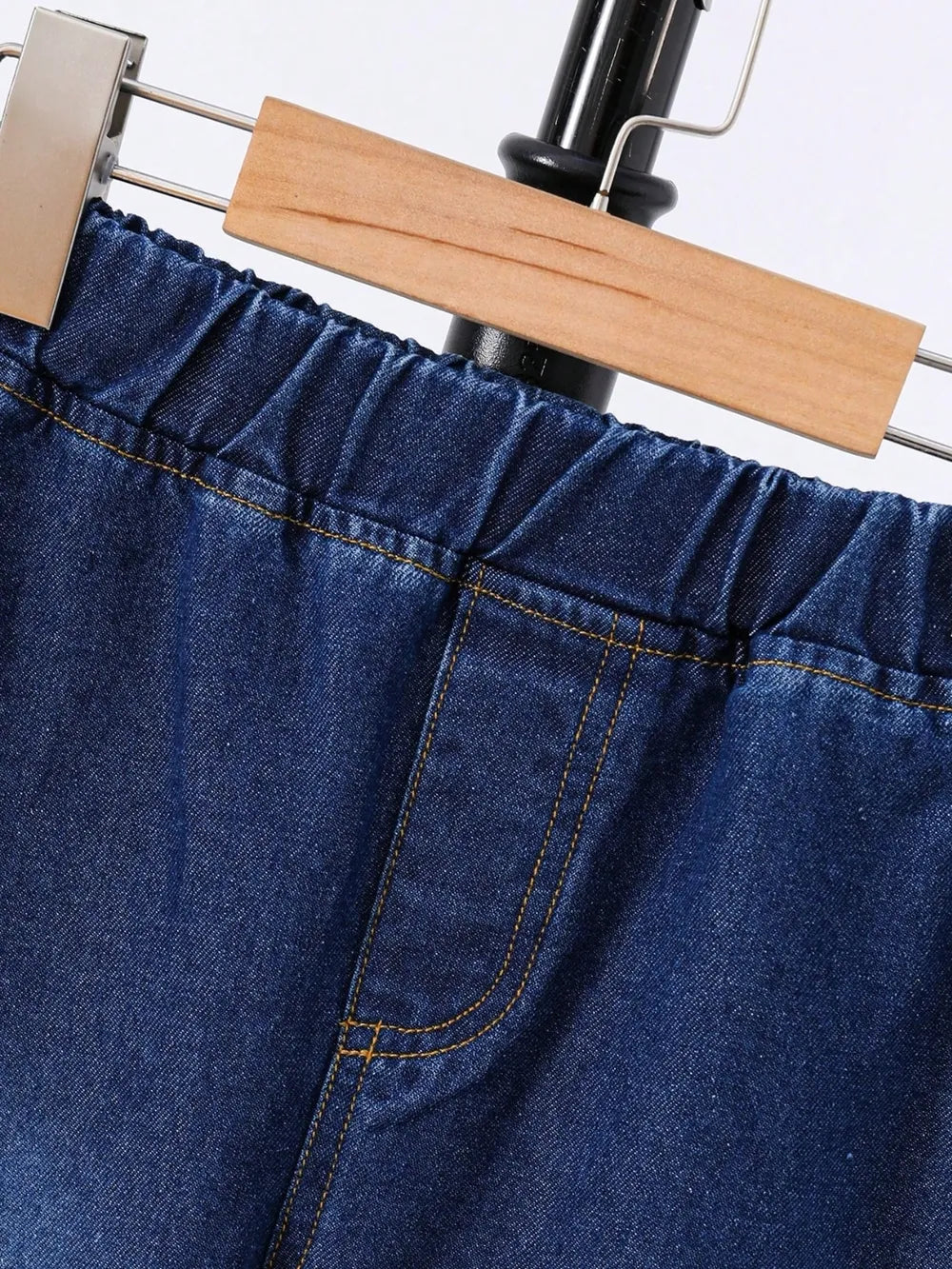 Children's Round Neck Letter Graphic T-Shirt and Distressed Jeans Set