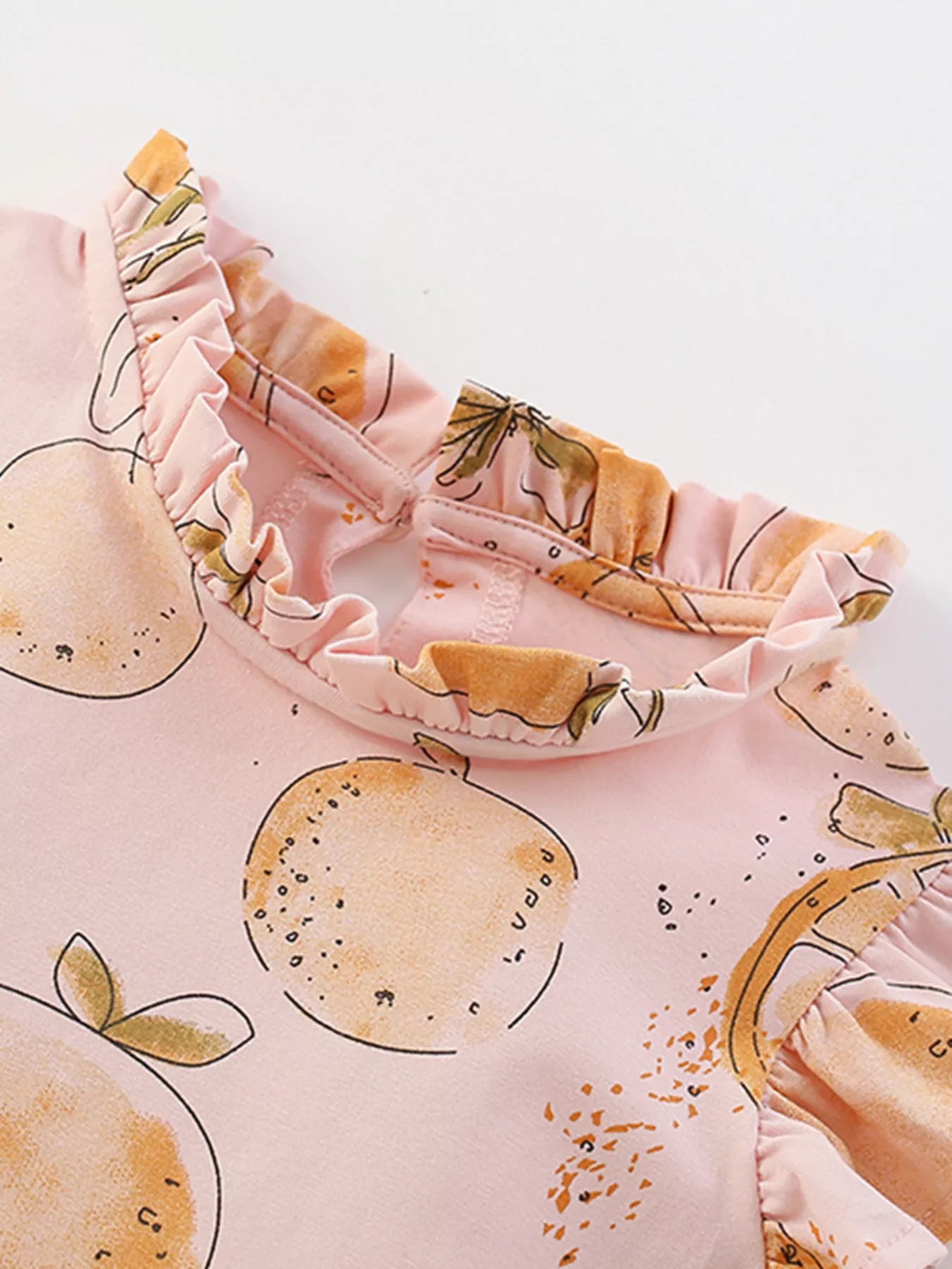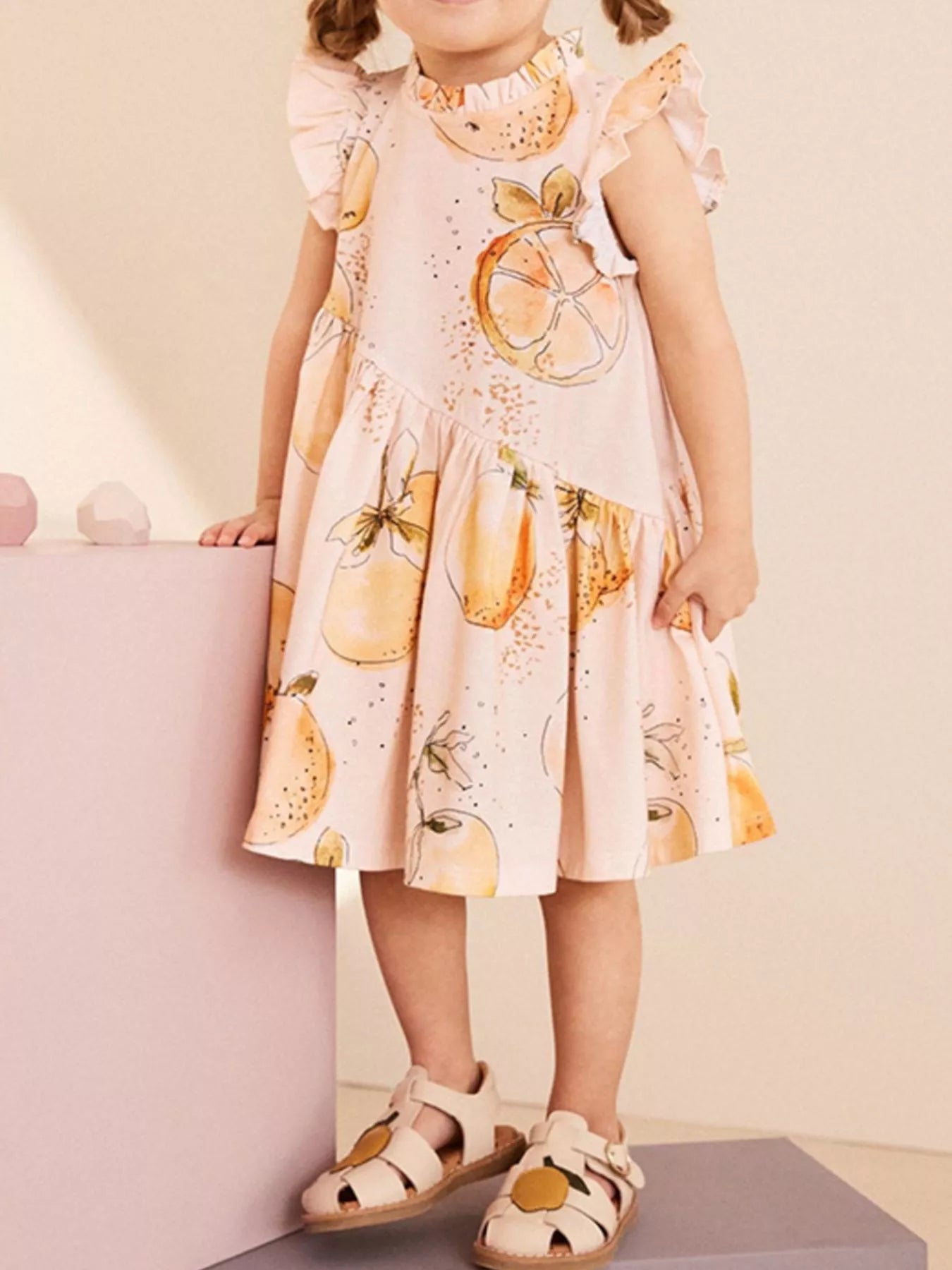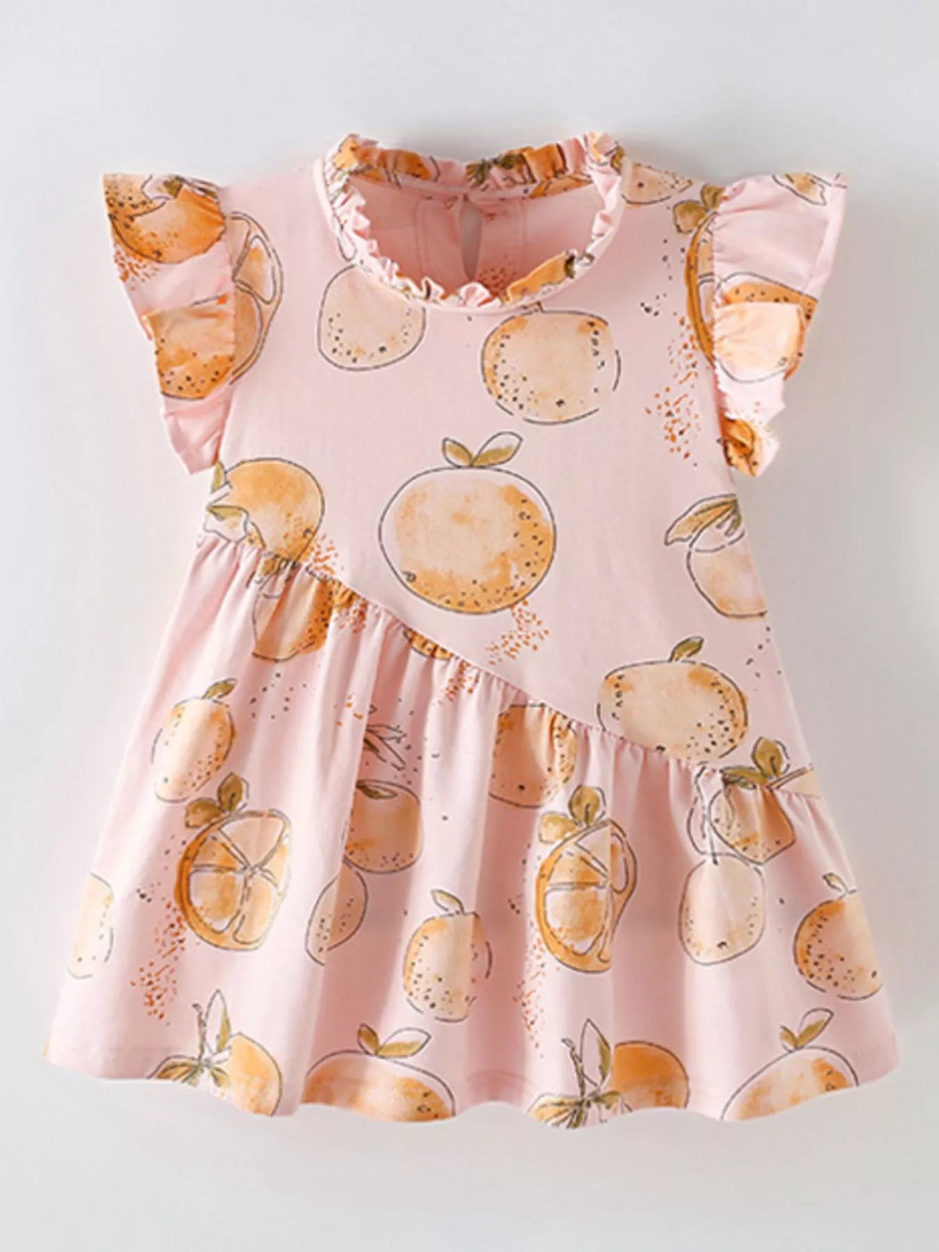 Children's Sweet Citrus Print Ruffle Sleeve Dress