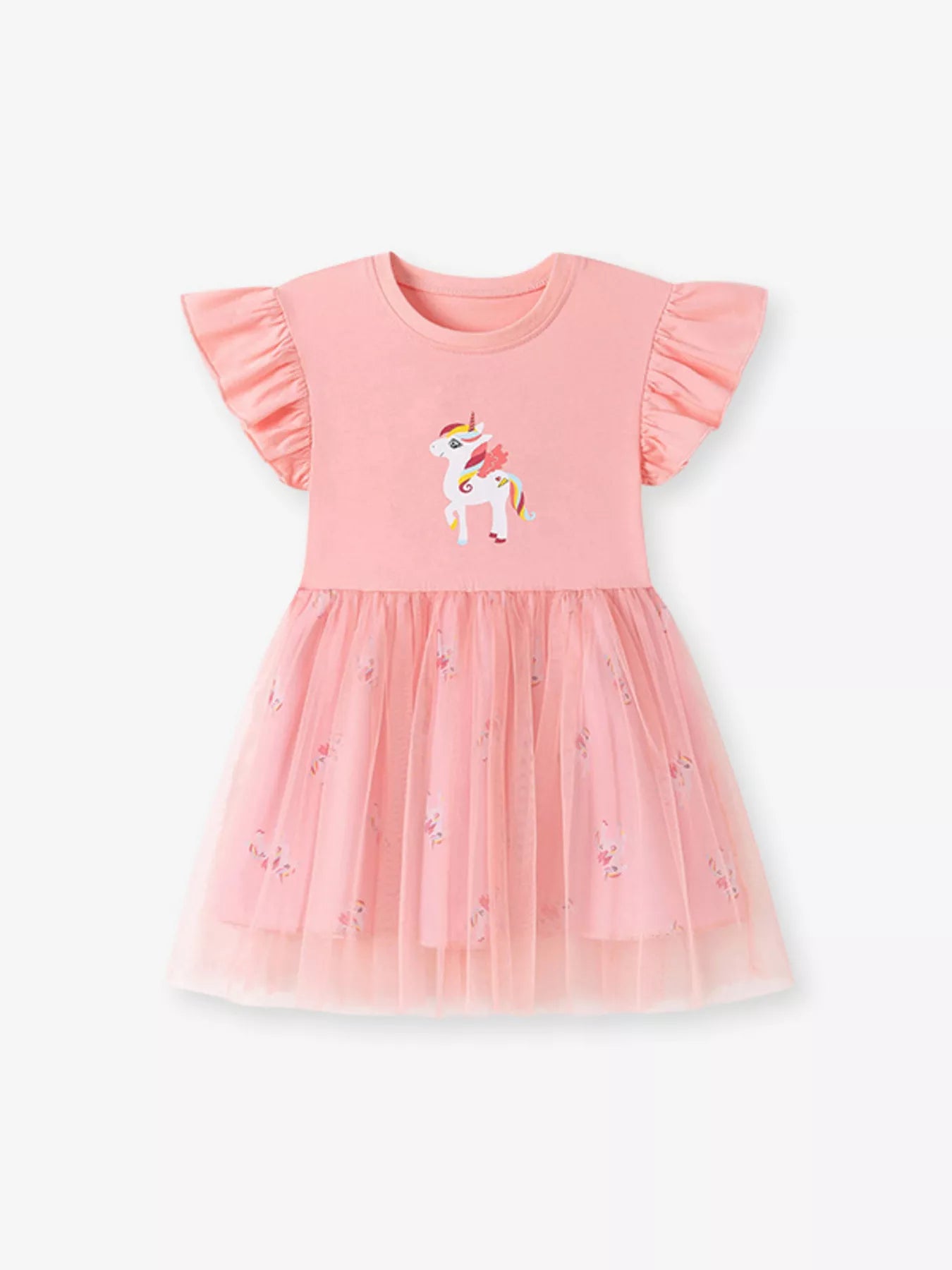 Children's Unicorn Ruffle Sleeve Tulle Dress