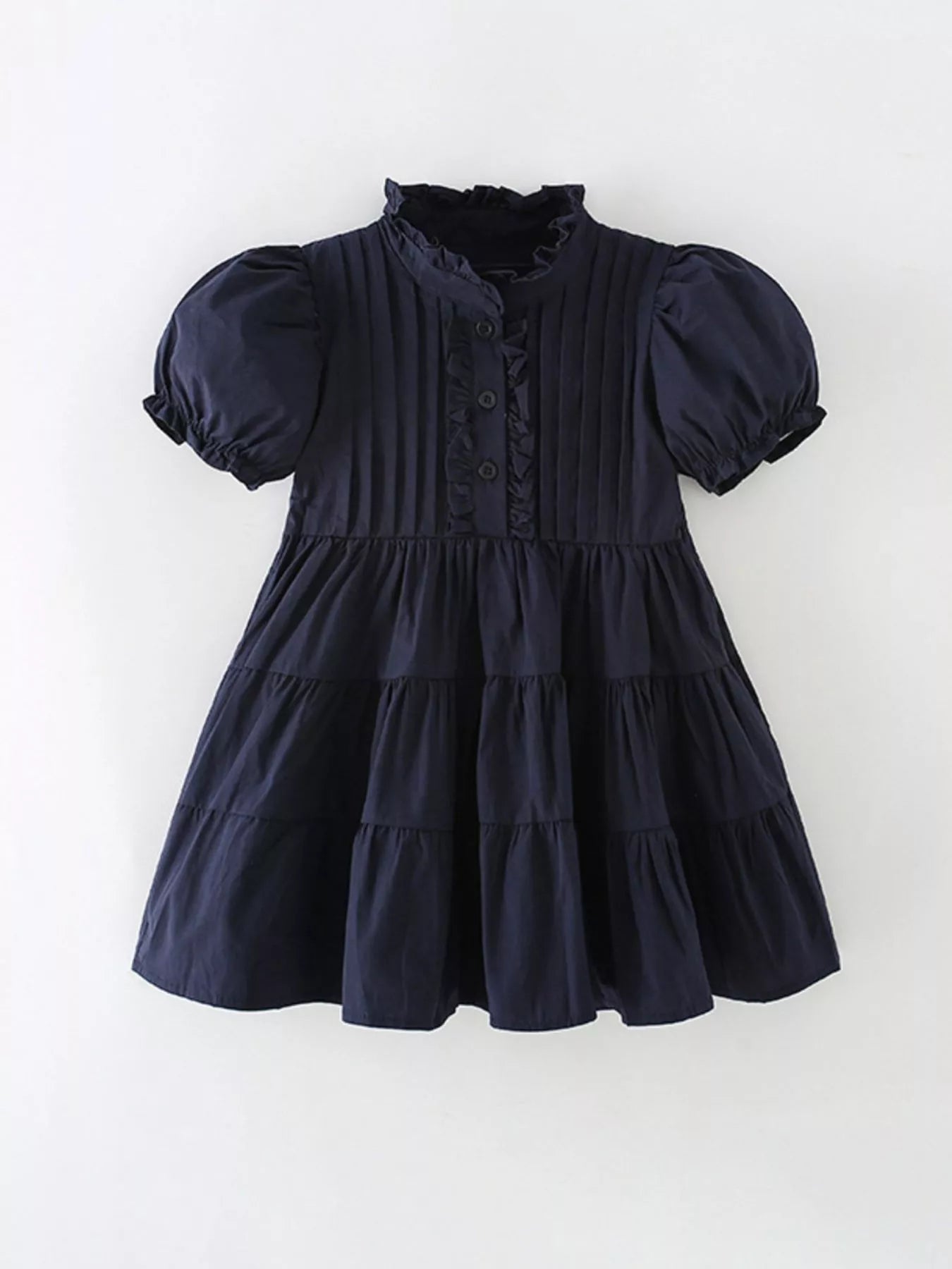 Children's Vintage Ruffle Collar Tiered Short Sleeve Dress