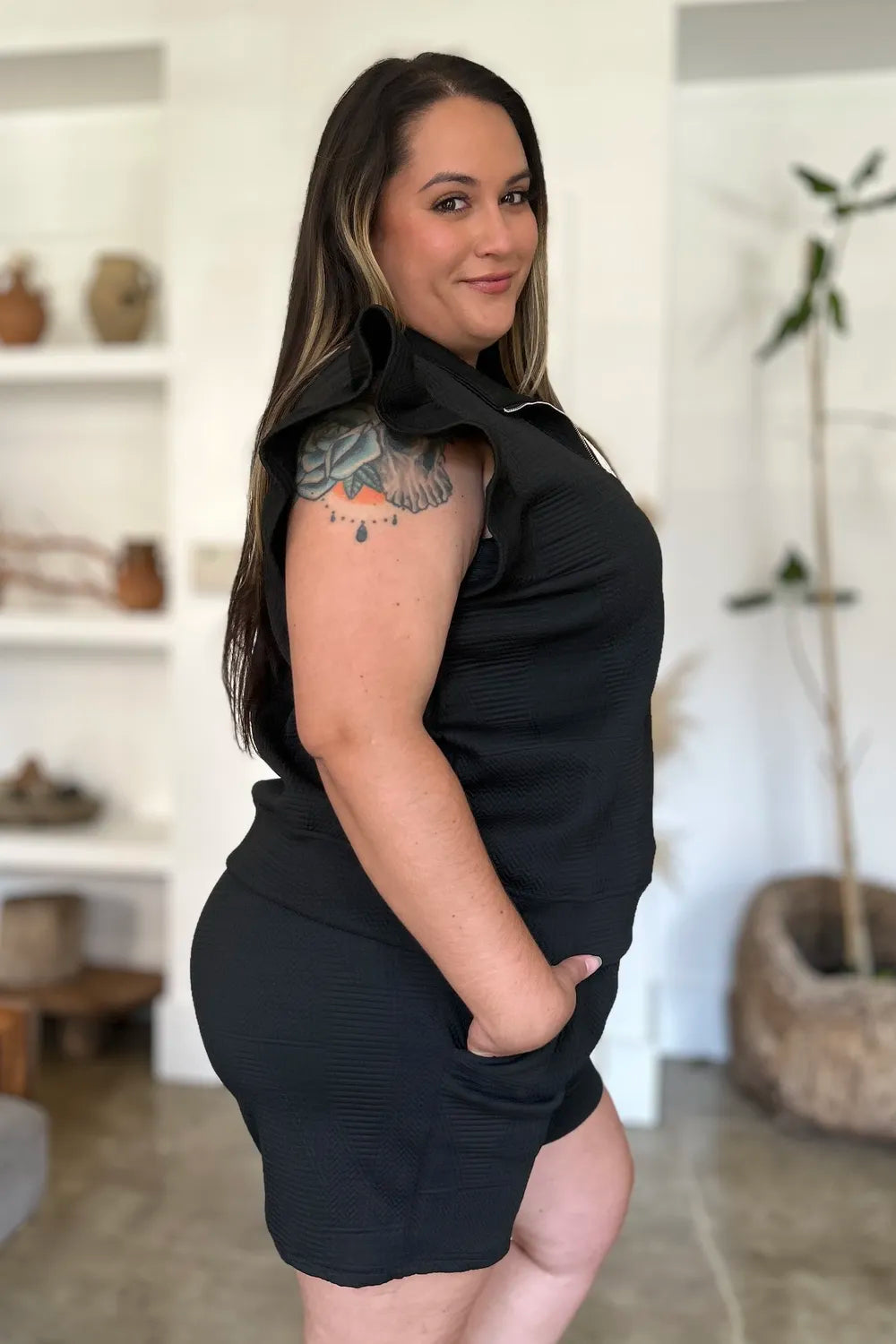 Double Take Full Size Texture Flounce Sleeve Top and Shorts Set