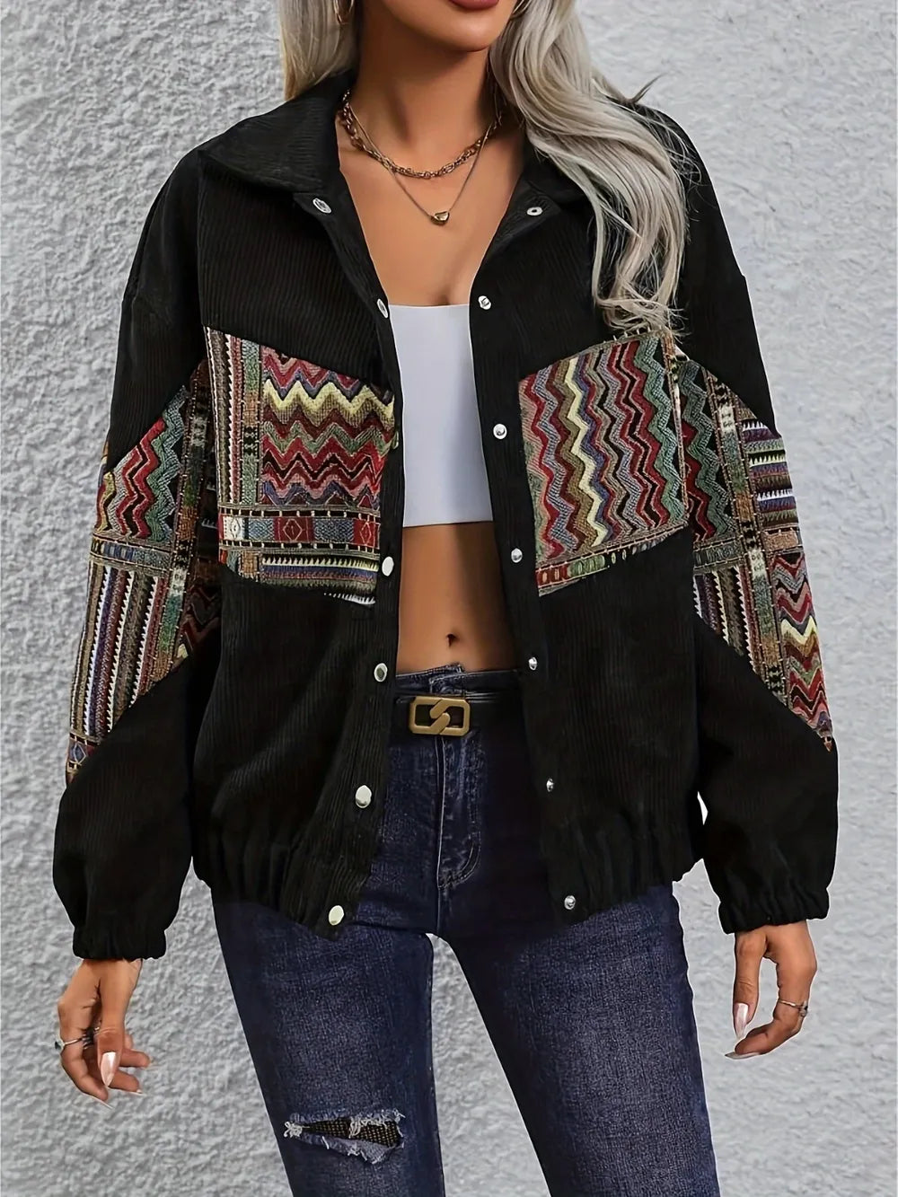 Embroidered Collared Neck Snap Down Jacket