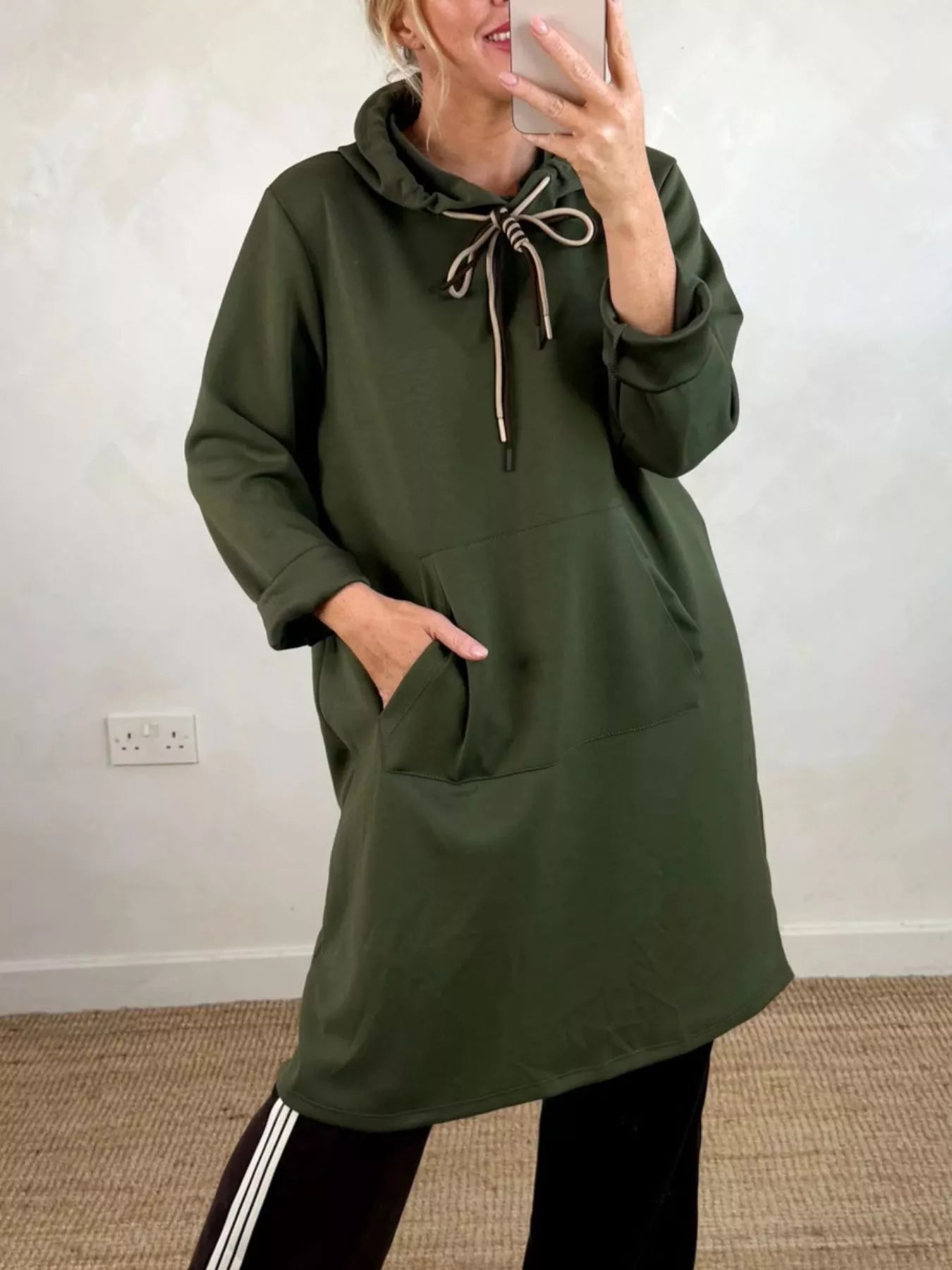 Full Size Casual Drawstring Hooded Sweatshirt Dress Plus Size
