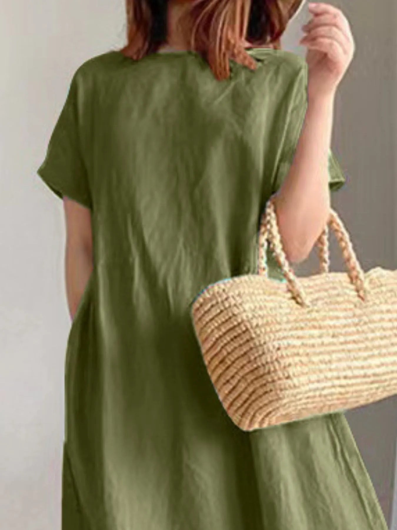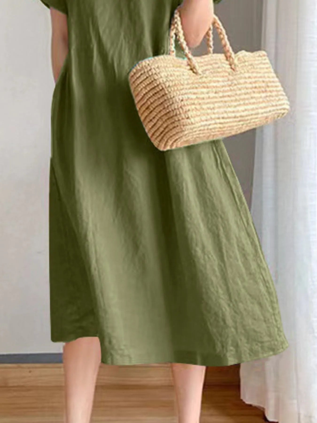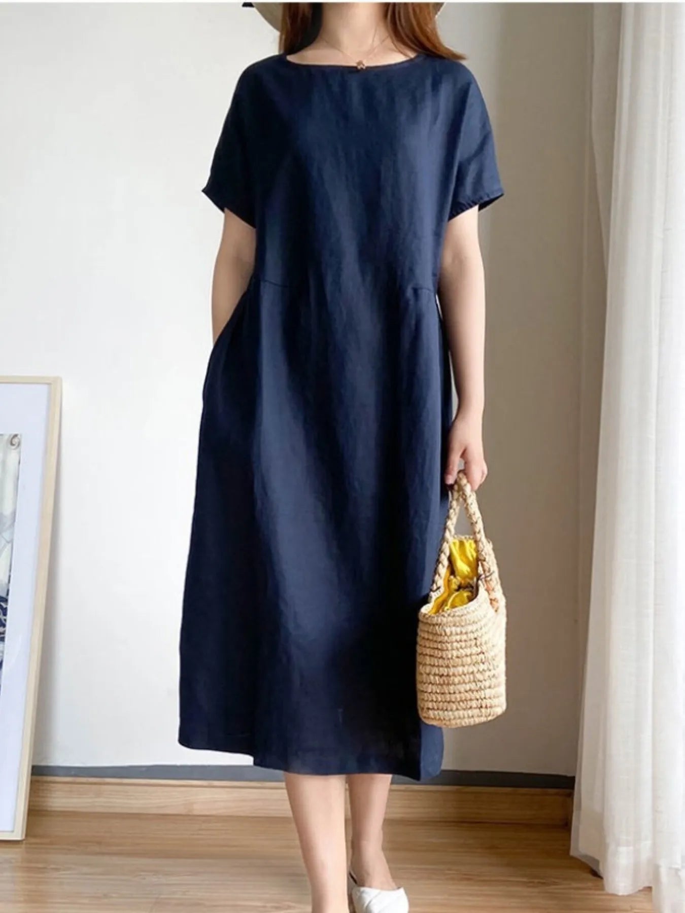 Full Size Casual Round Neck Midi Dress Plus Size