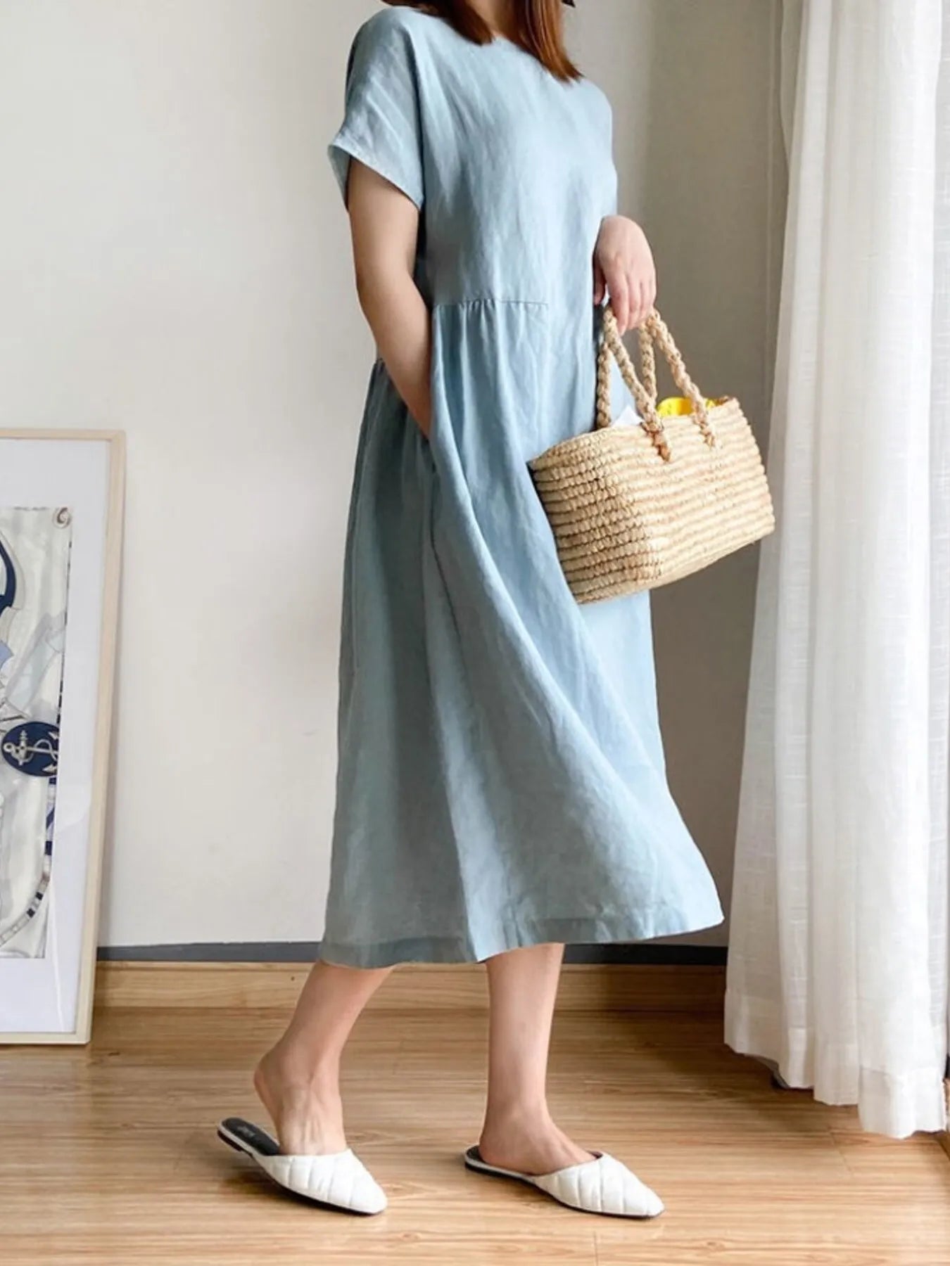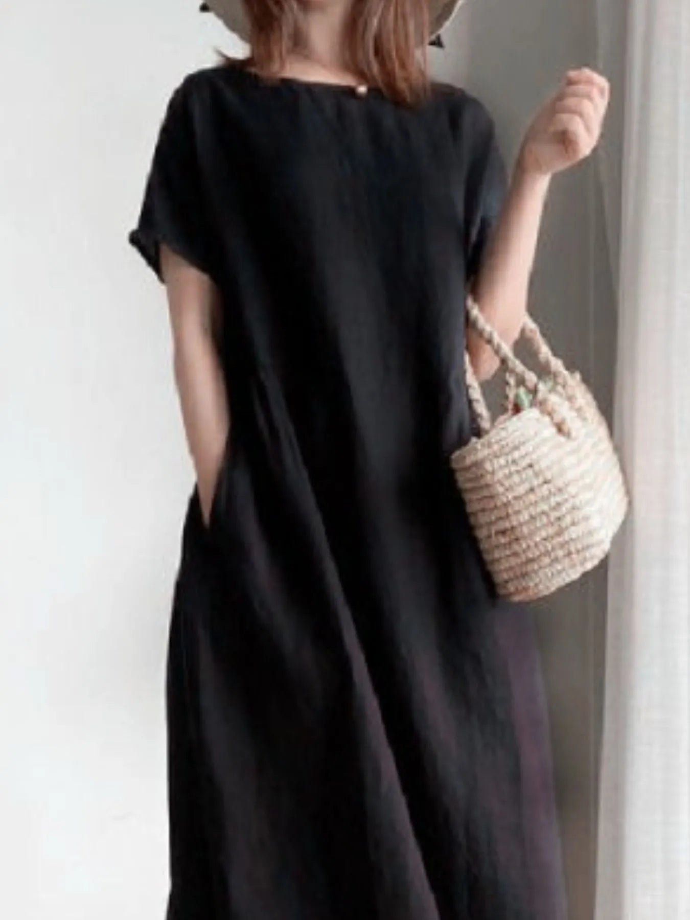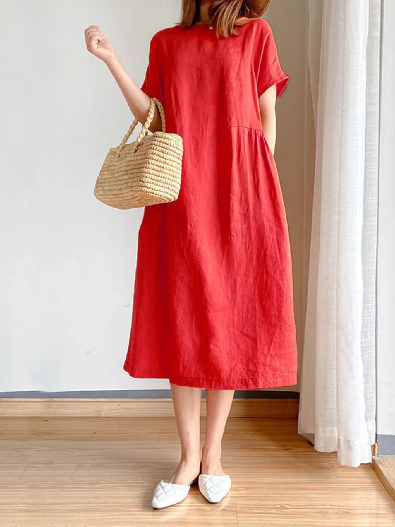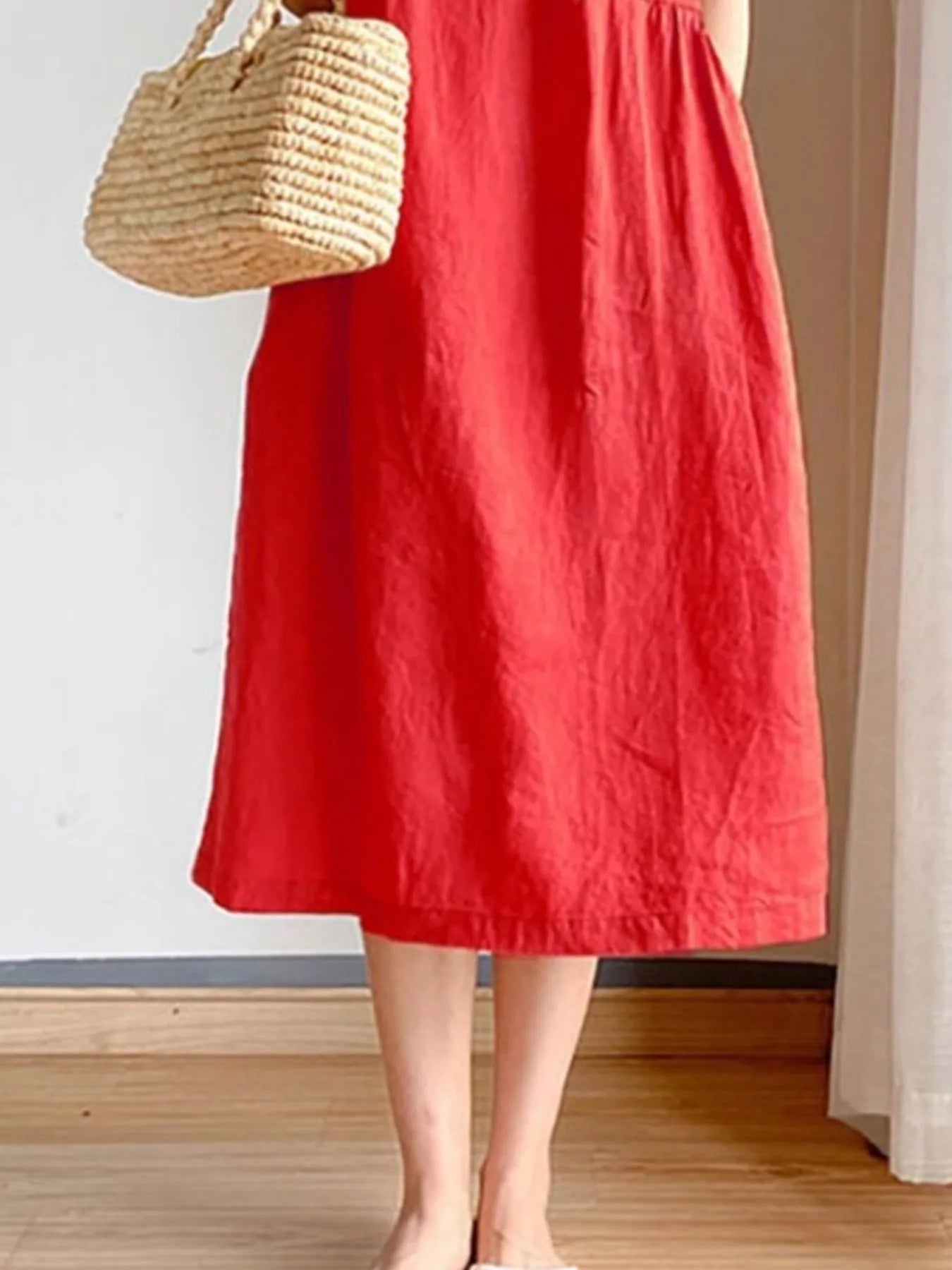 Full Size Casual Round Neck Midi Dress Plus Size