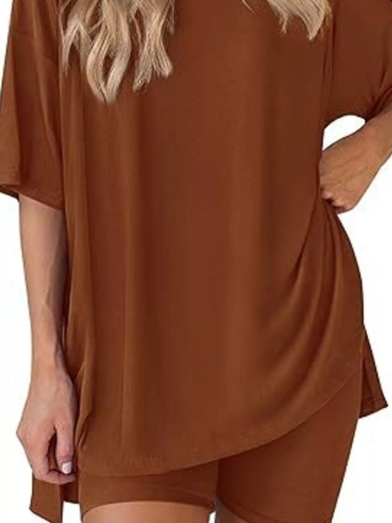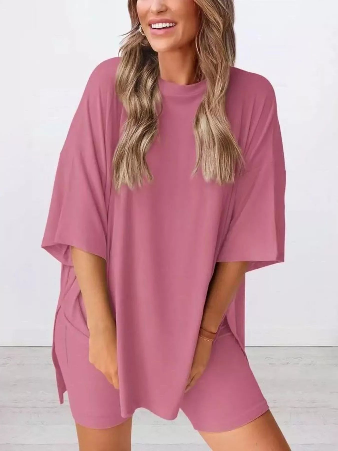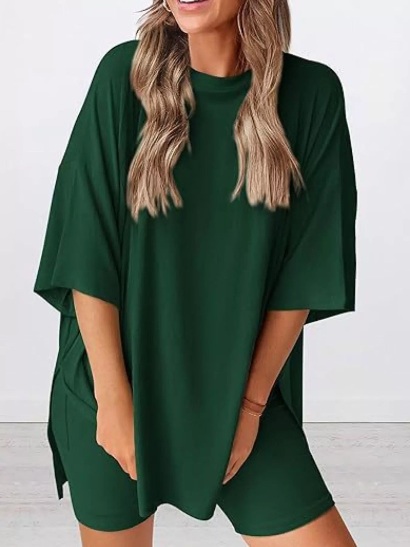 Full Size Half Sleeve T-Shirt and Shorts Set Plus Size