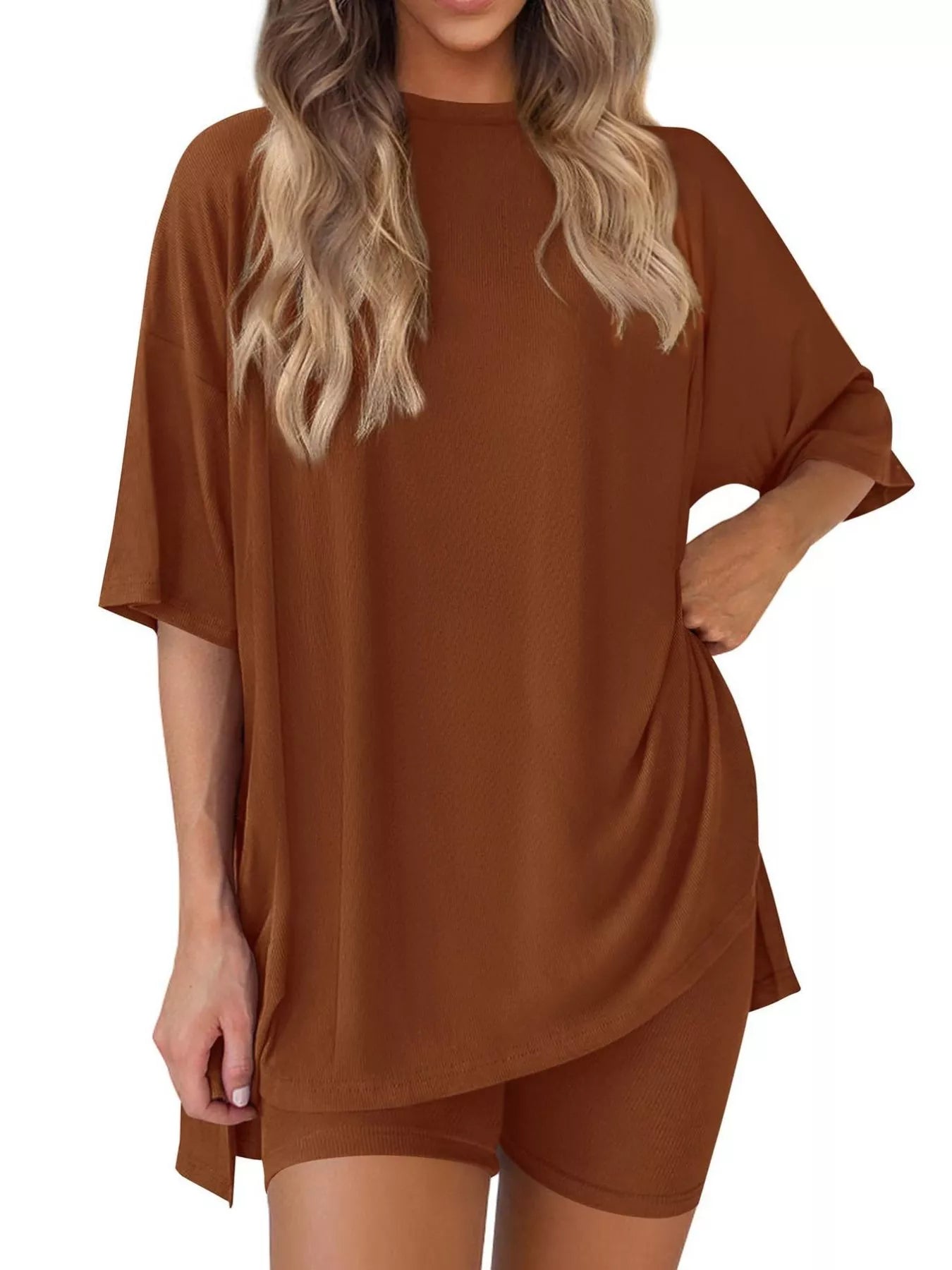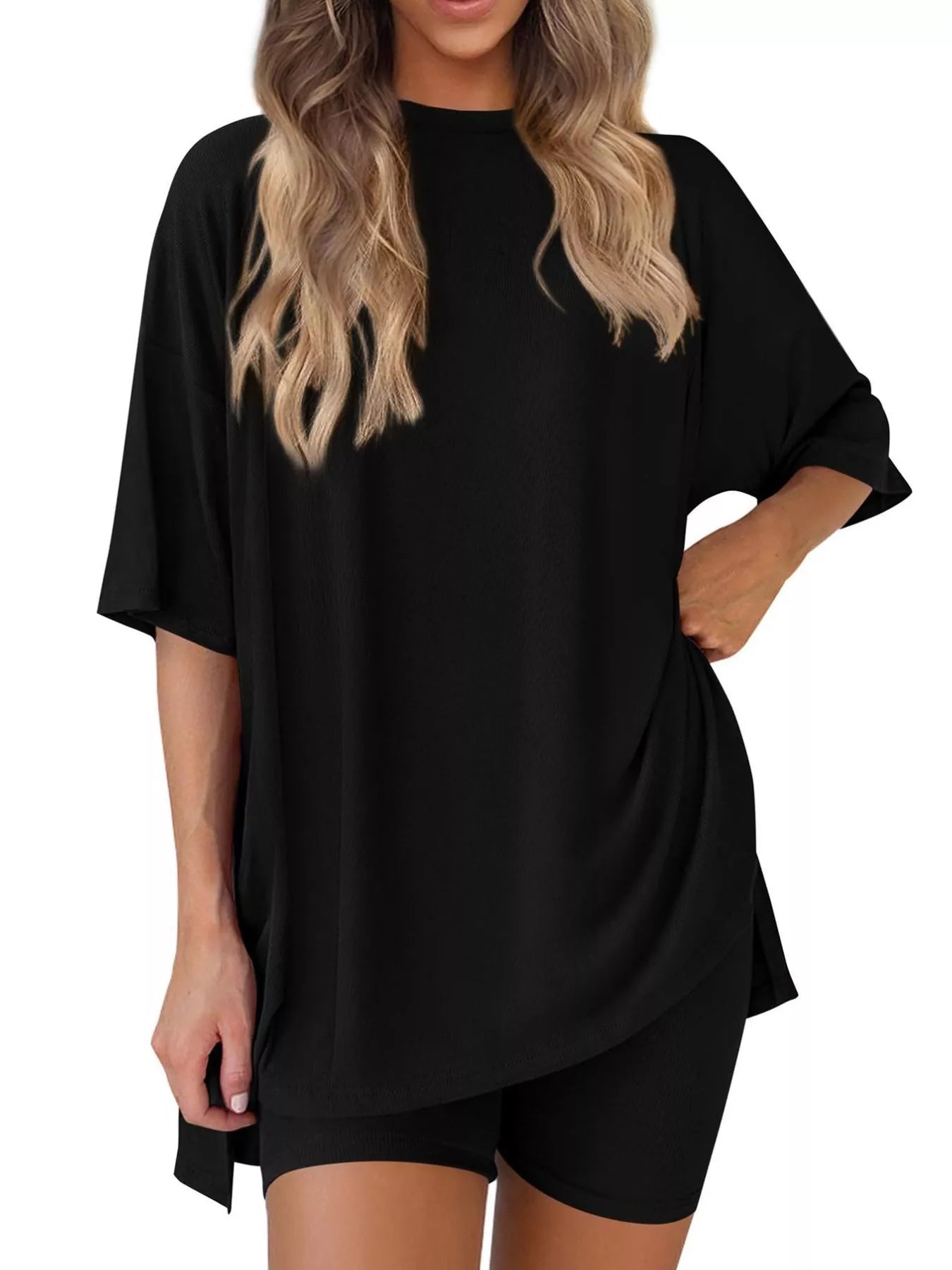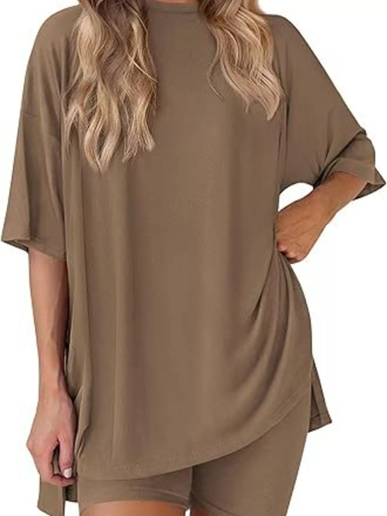 Full Size Half Sleeve T-Shirt and Shorts Set Plus Size