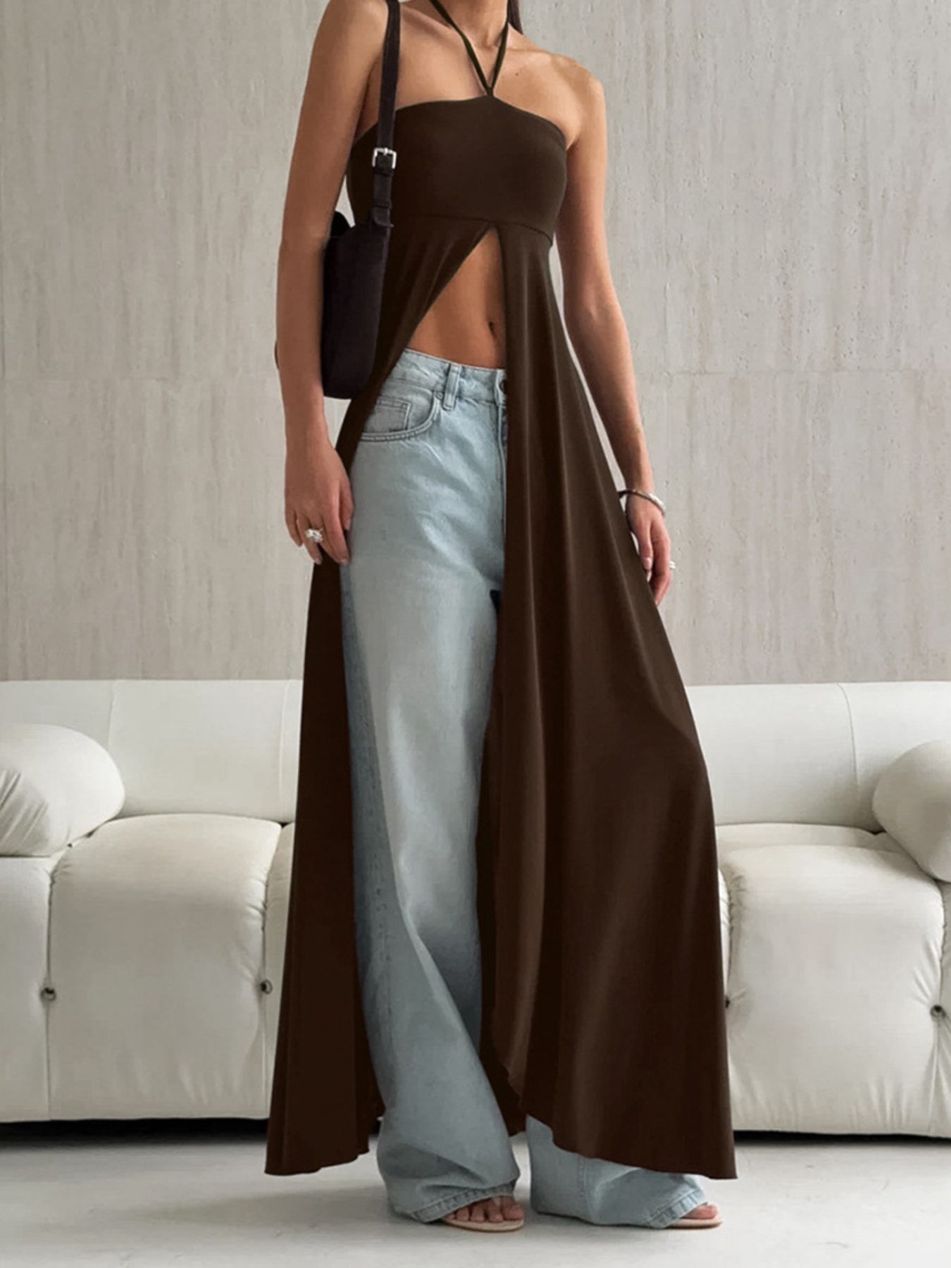 Halter Neck Split Longline Cami