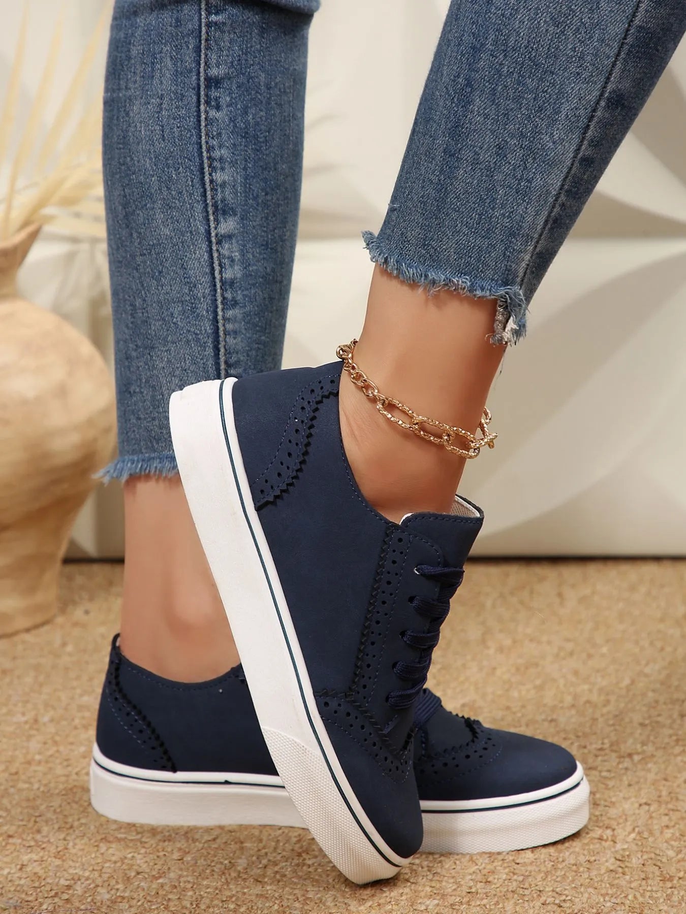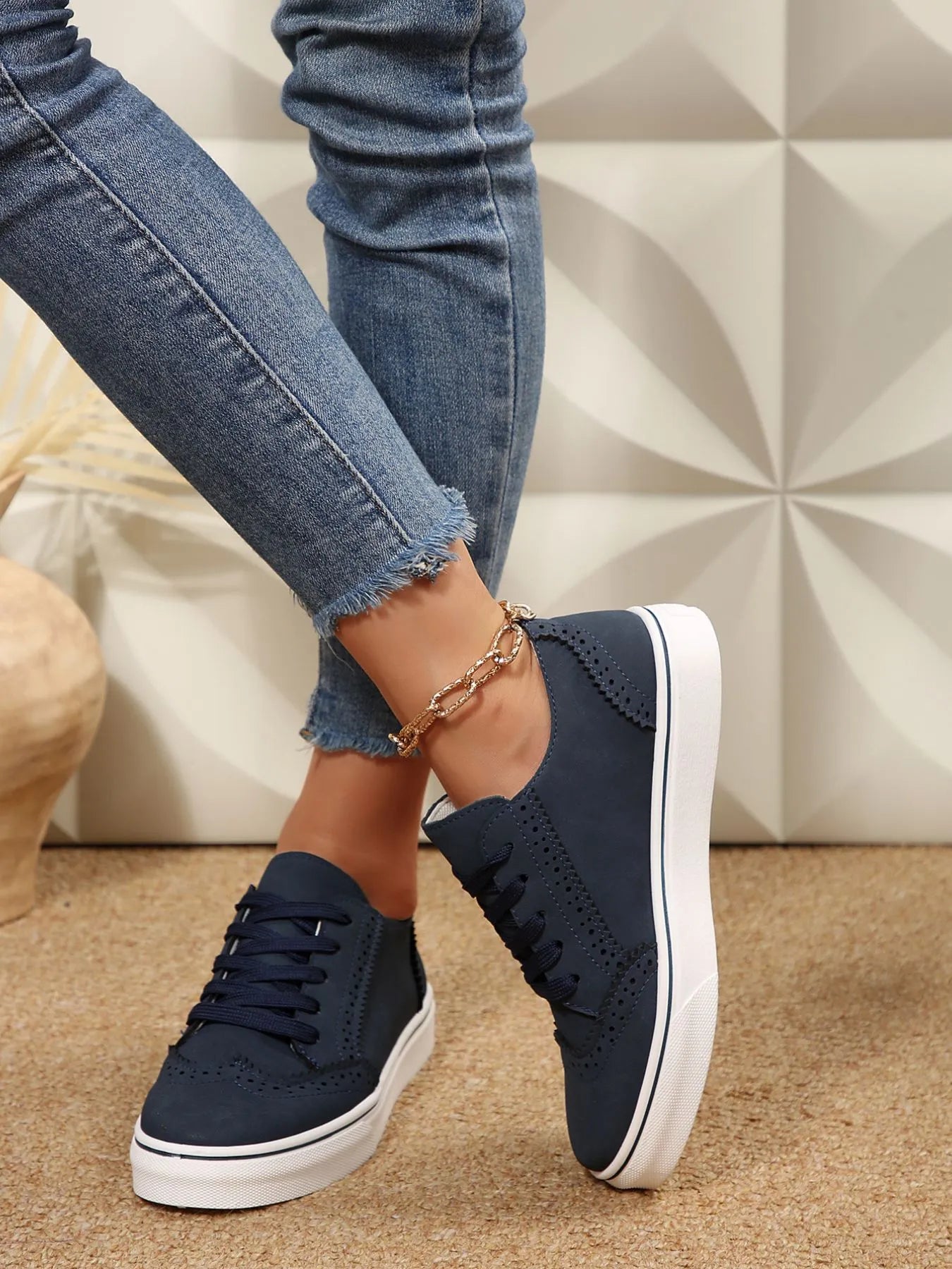 Lace Up Round Toe Platform Sneakers