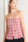 A tweed top featuring strapless, button down detail, faux pockets and back zipper closure