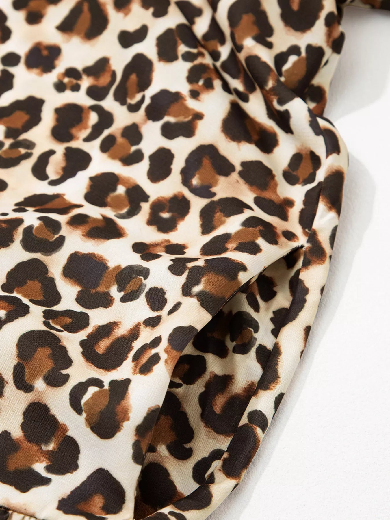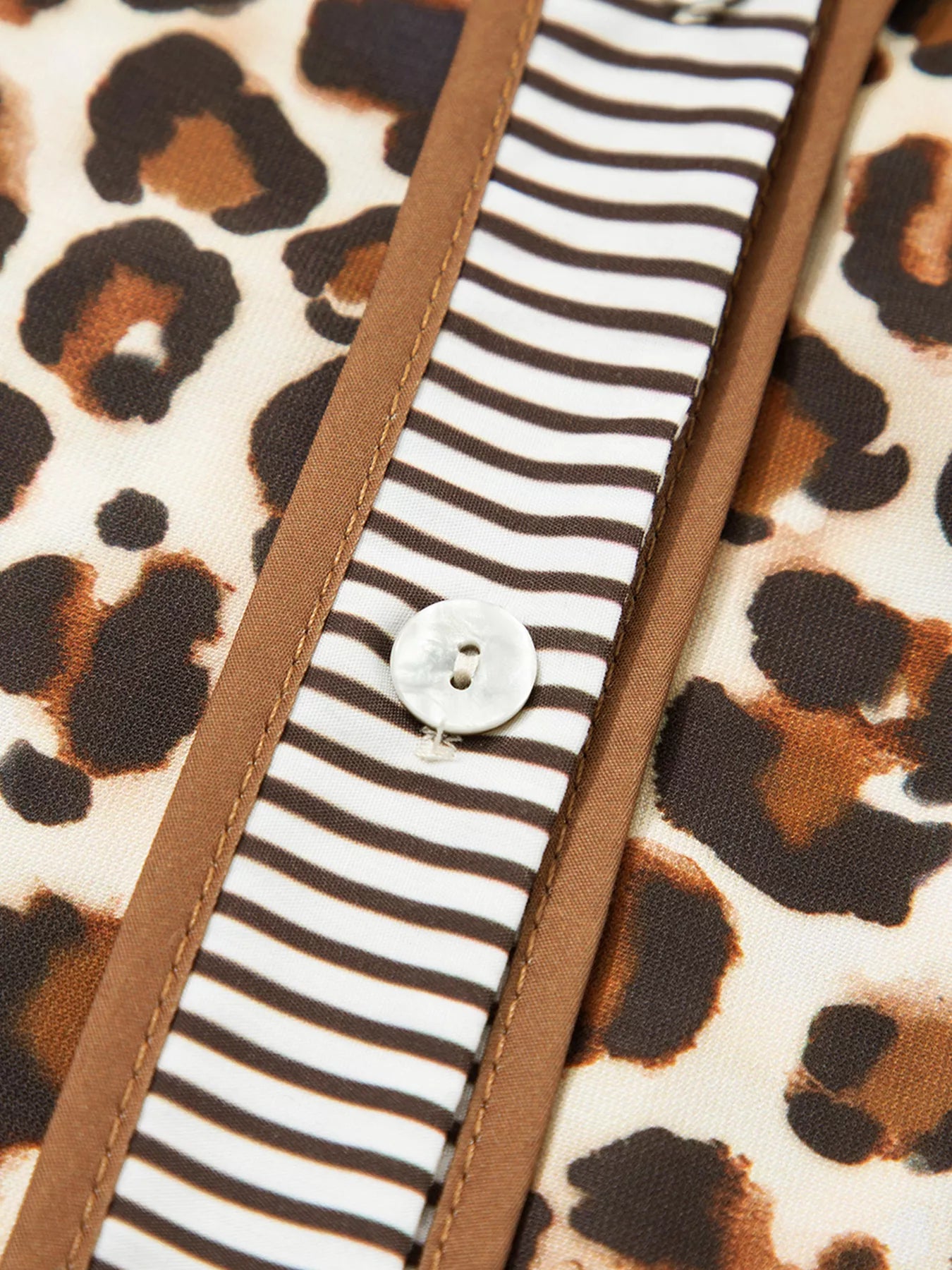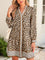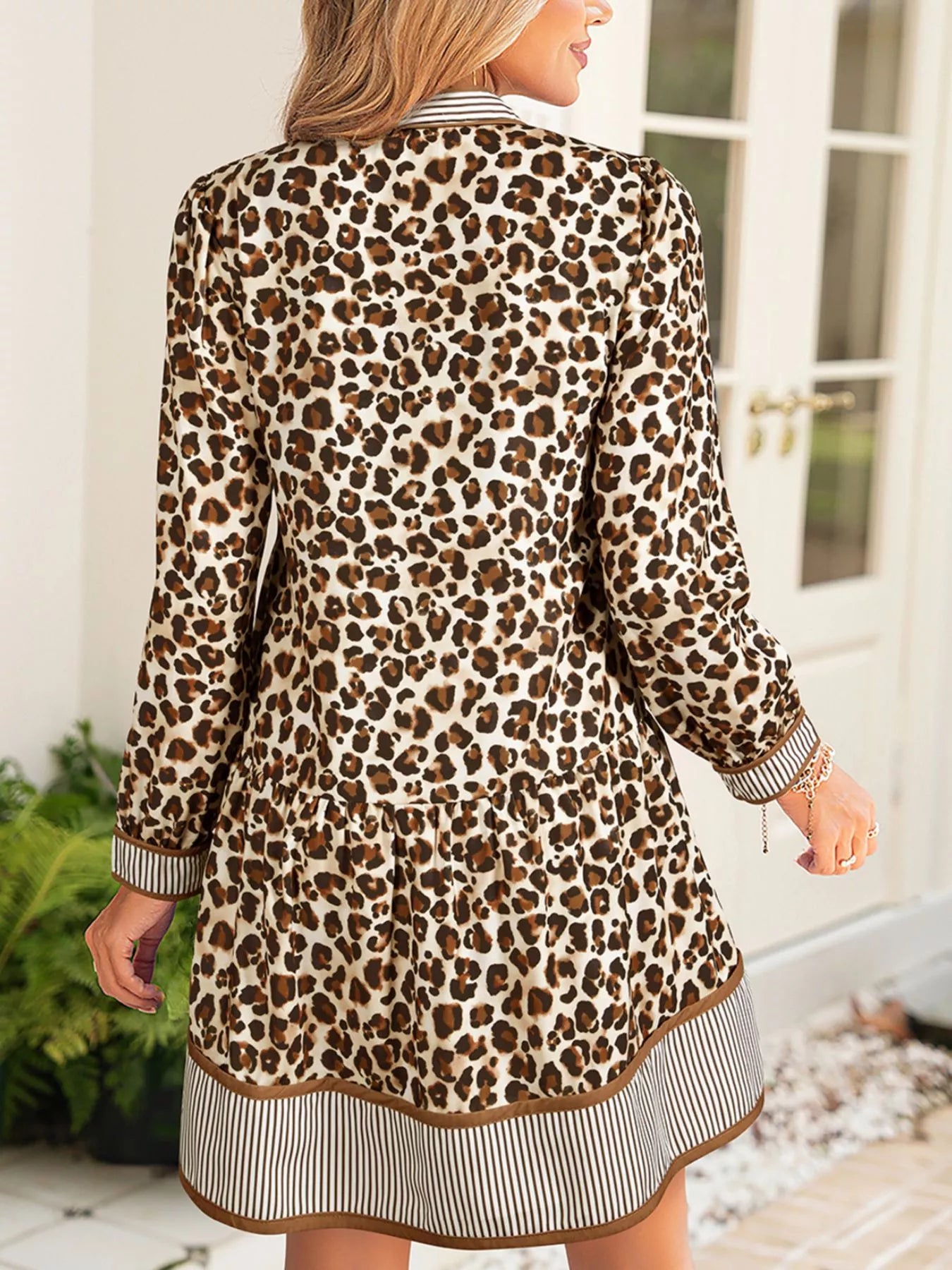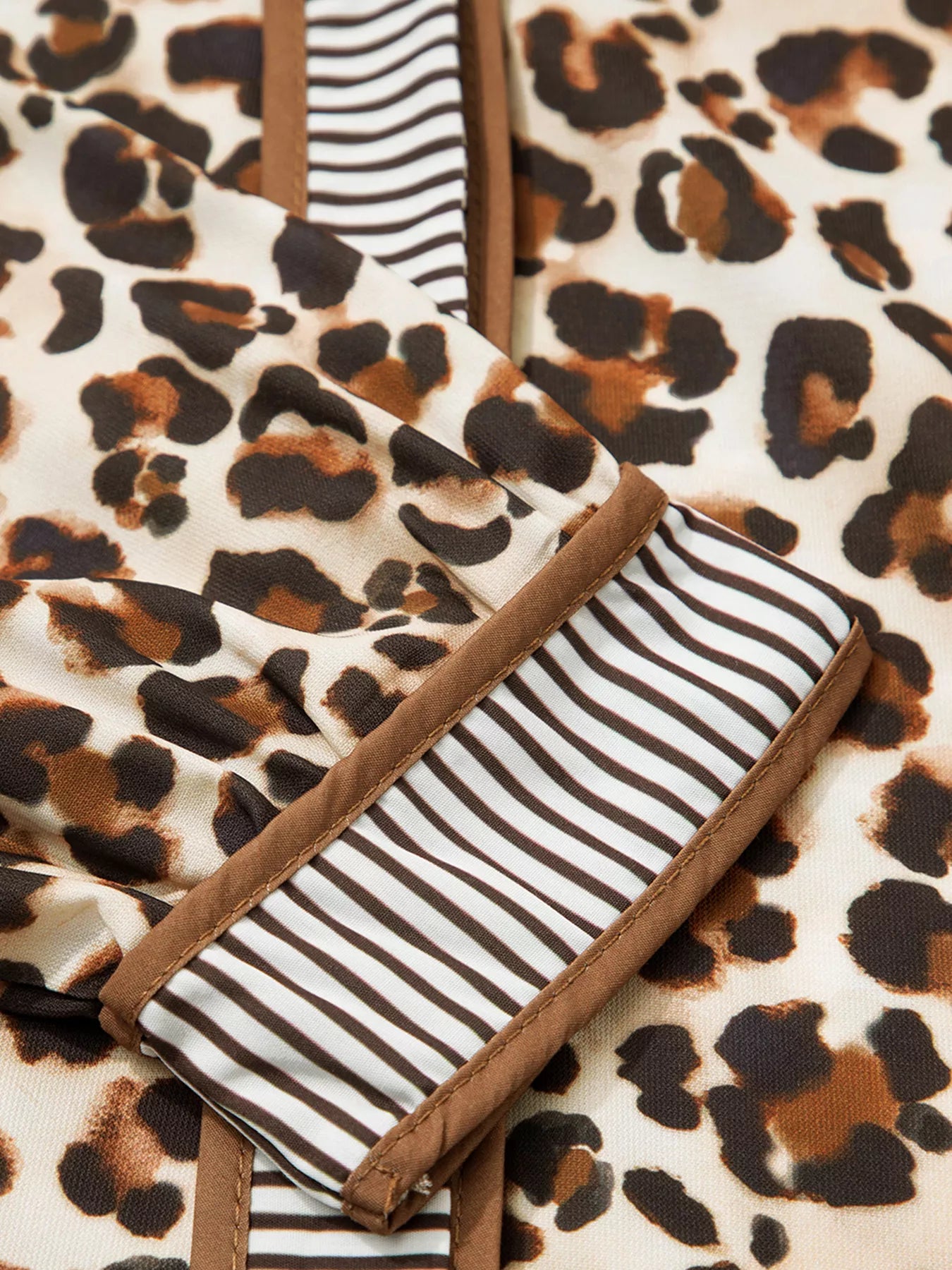 Leopard Print Striped Patchwork 3/4 Sleeve Loose Mini Dress