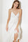 A woven eyelet midi dress featuring surplice cami top with adjustable straps, smocked waistband and tiered skirt