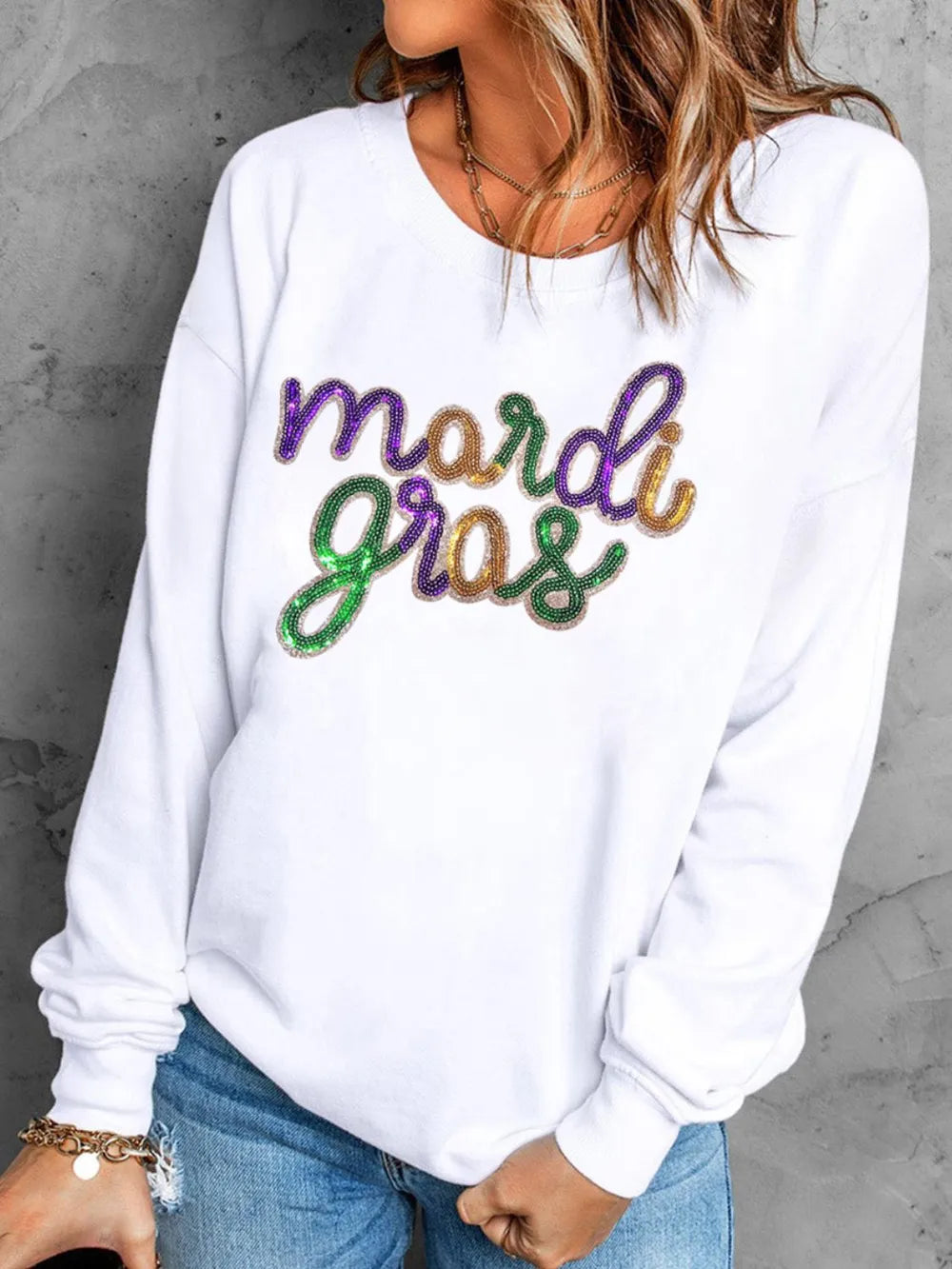 MARDI GRAS Sequin Long Sleeve Sweatshirt