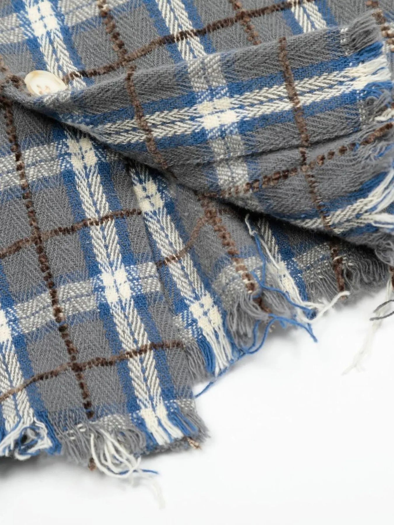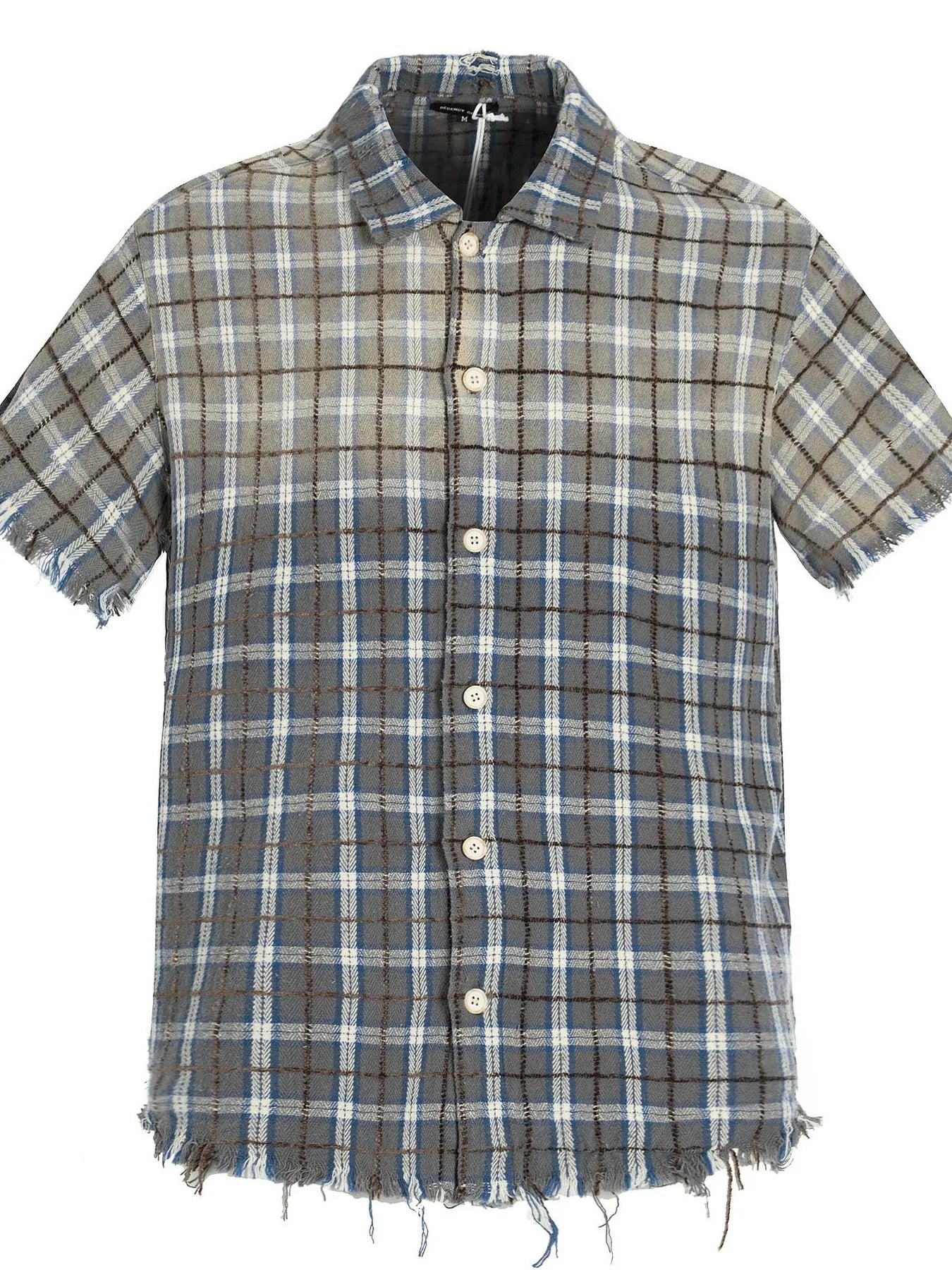 Men's Frayed Hem Plaid Check Short Sleeve Shirt