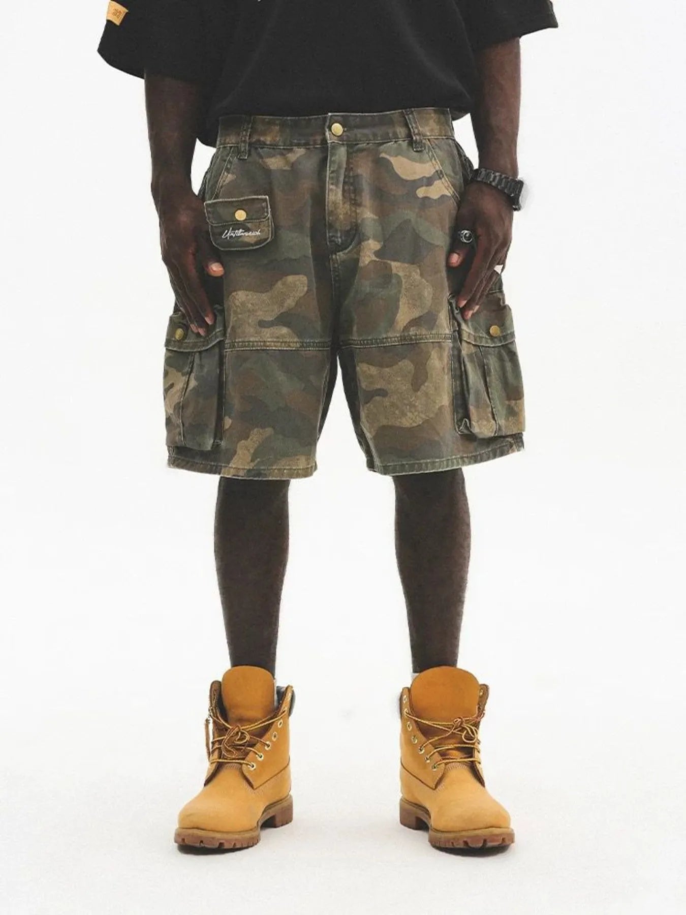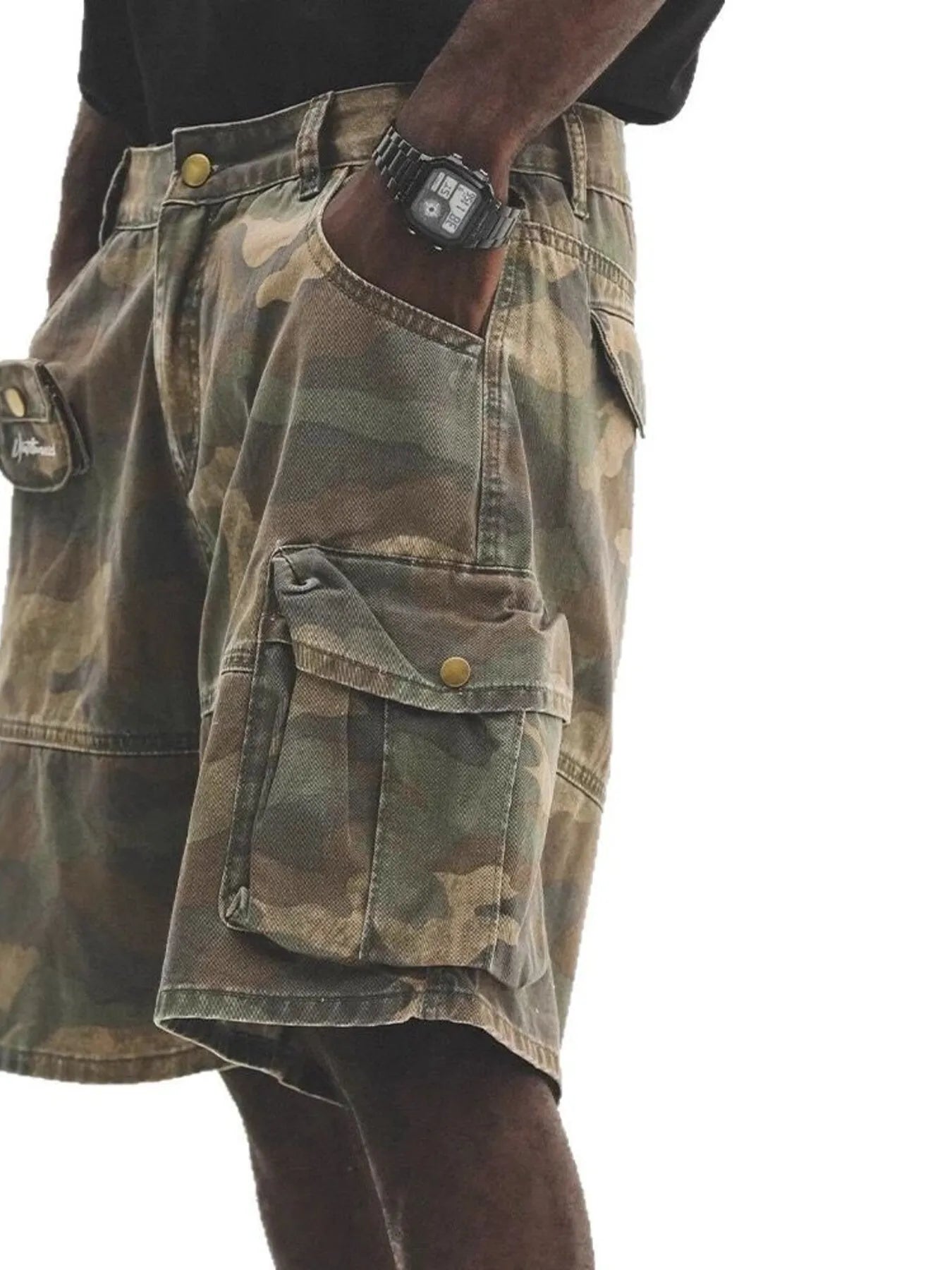 Men's Plus Size Camo Cargo Shorts with Multiple Pockets