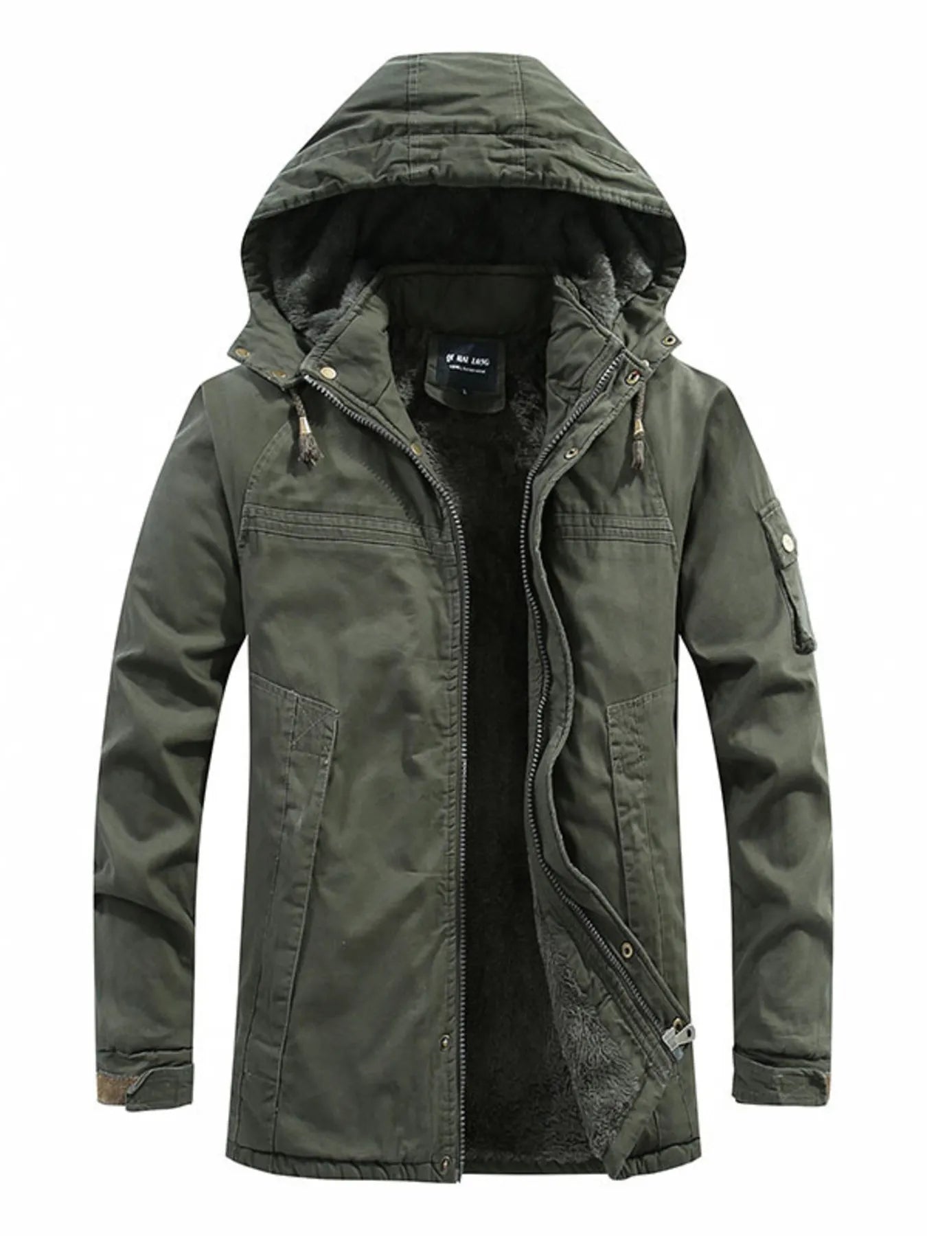 Men's Plus Size Drawstring Zip Up Hooded Jacket