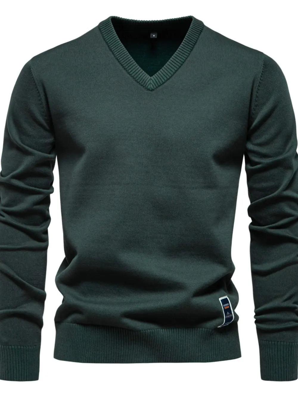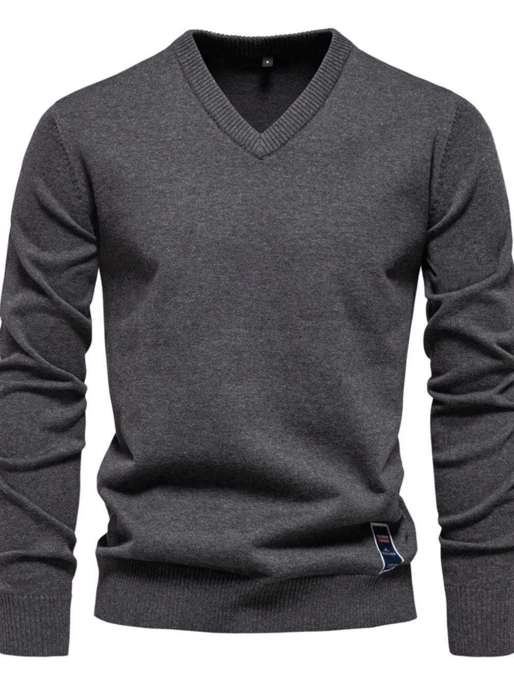 Men's Ribbed Hem V-Neck Long Sleeve Sweater