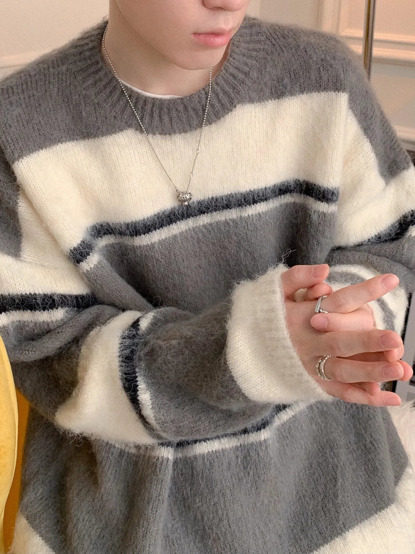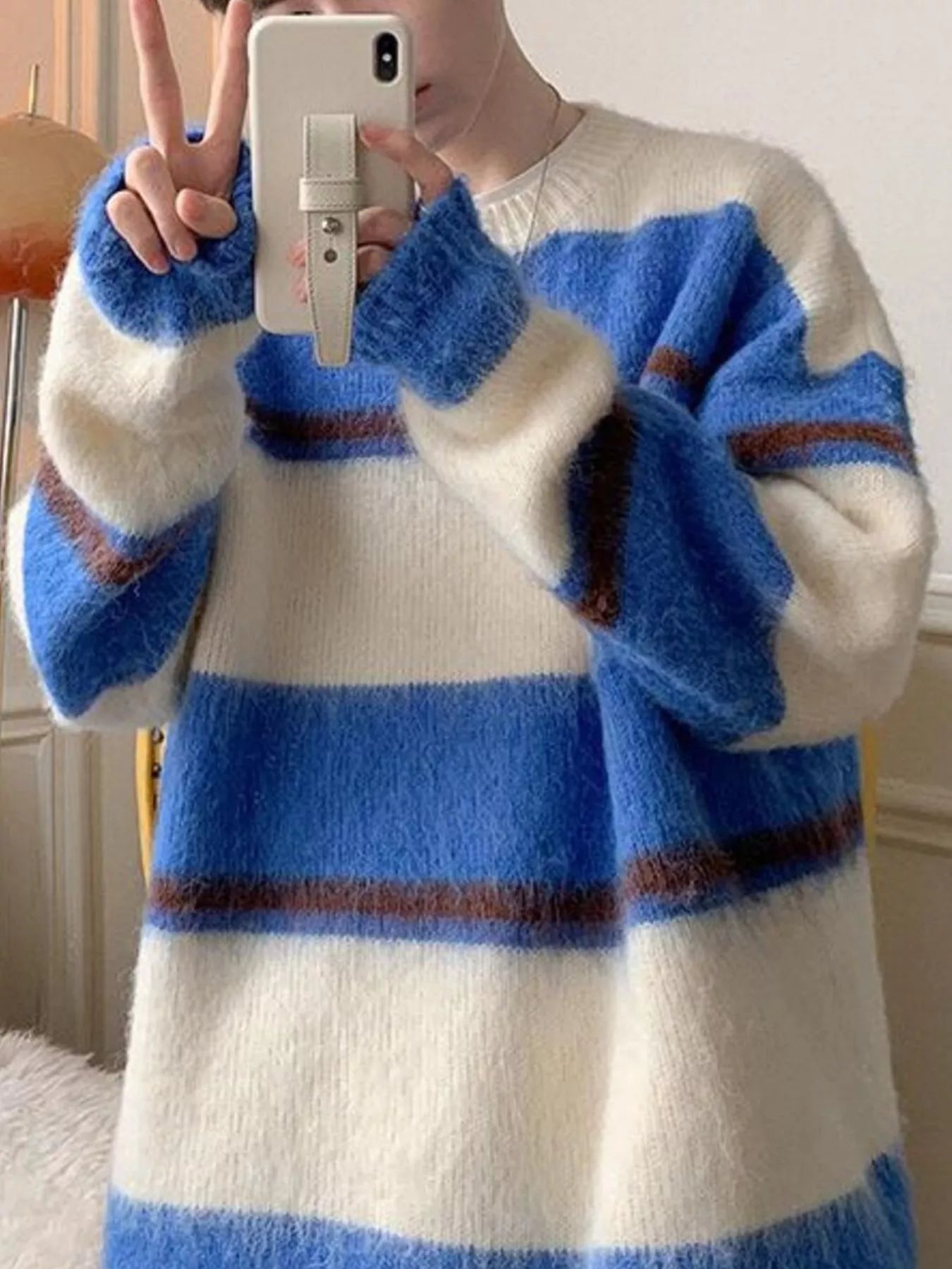 Men's Striped Fuzzy Knit Pullover Sweater