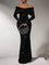 Off-Shoulder Glitter Evening Maxi Dress