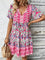 Printed Tie Neck Short Sleeve Dress