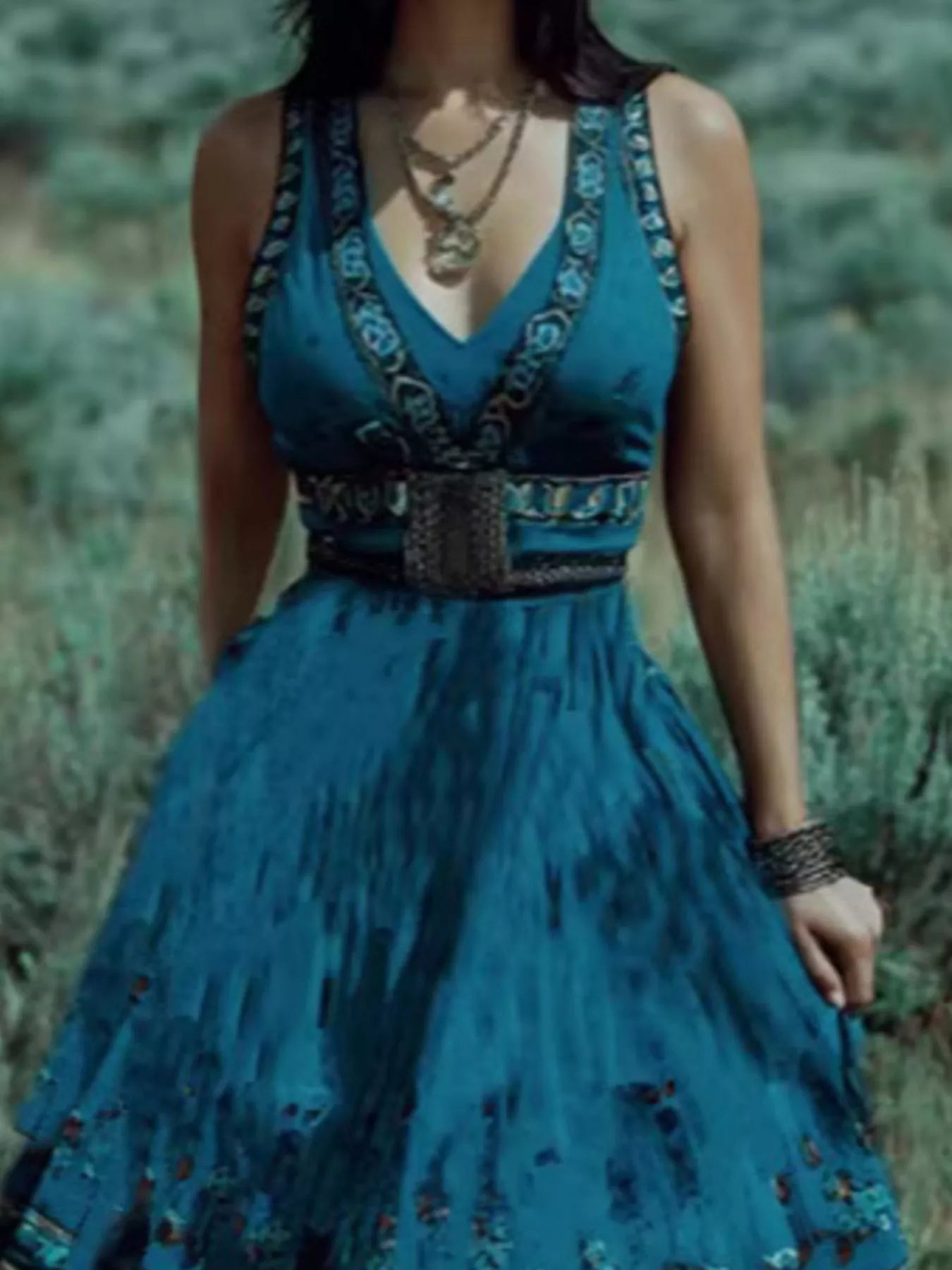 Printed V-Neck Maxi Dress