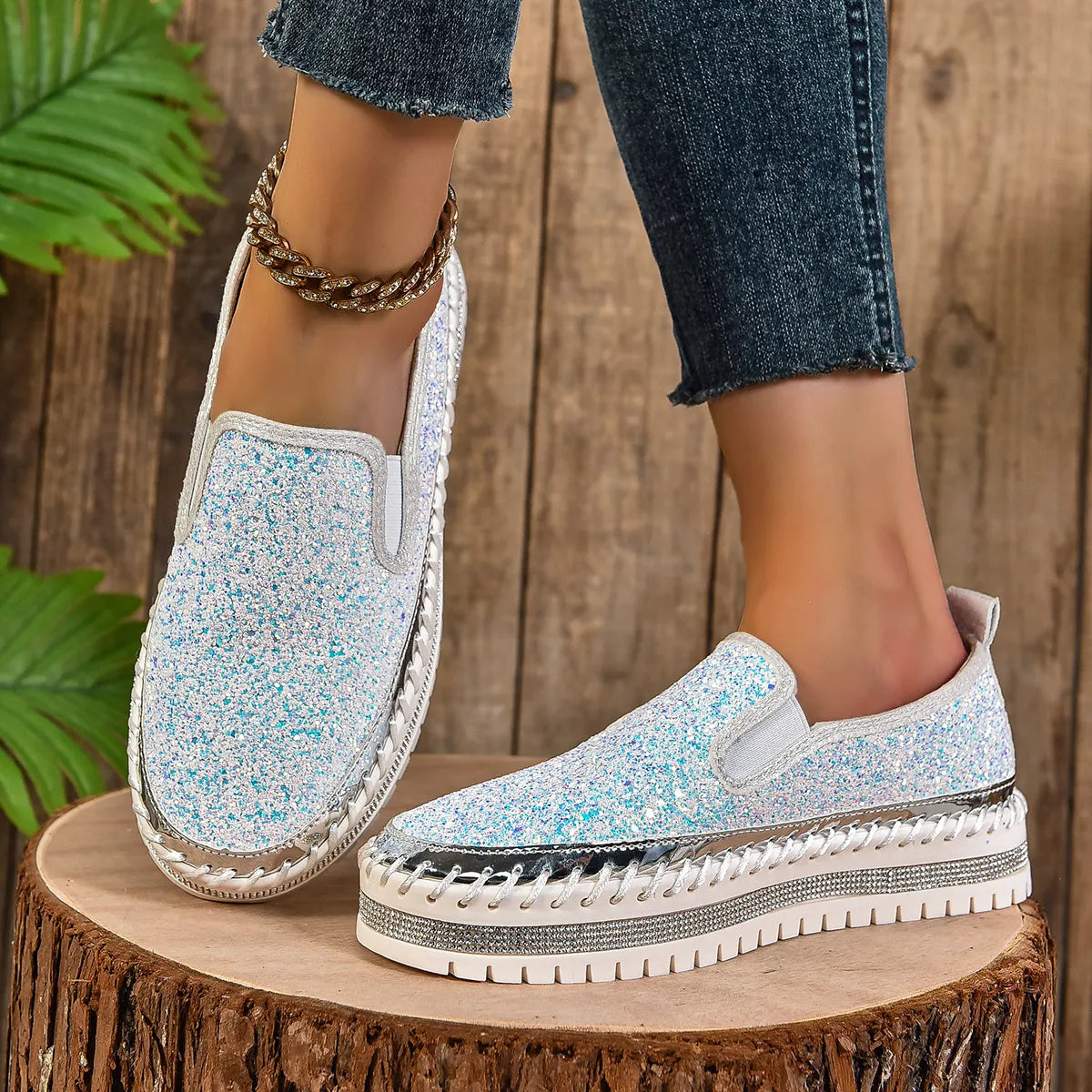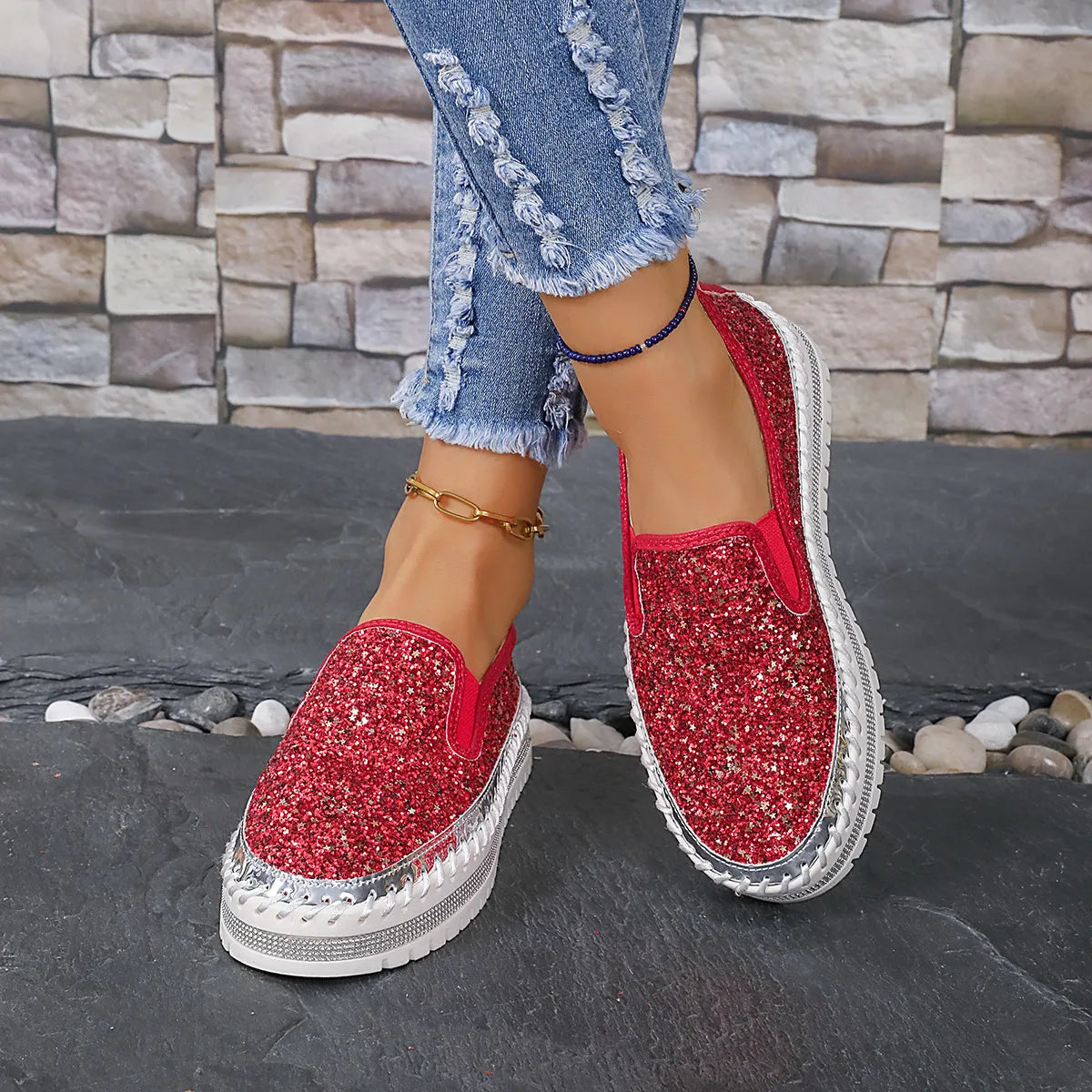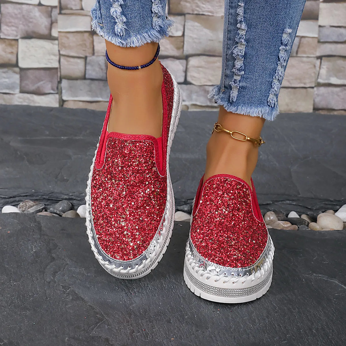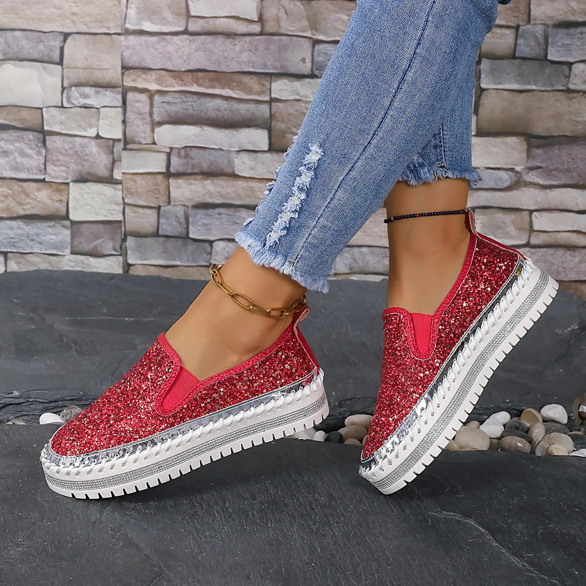 - Material:Sequins,PU Leather,Rubber