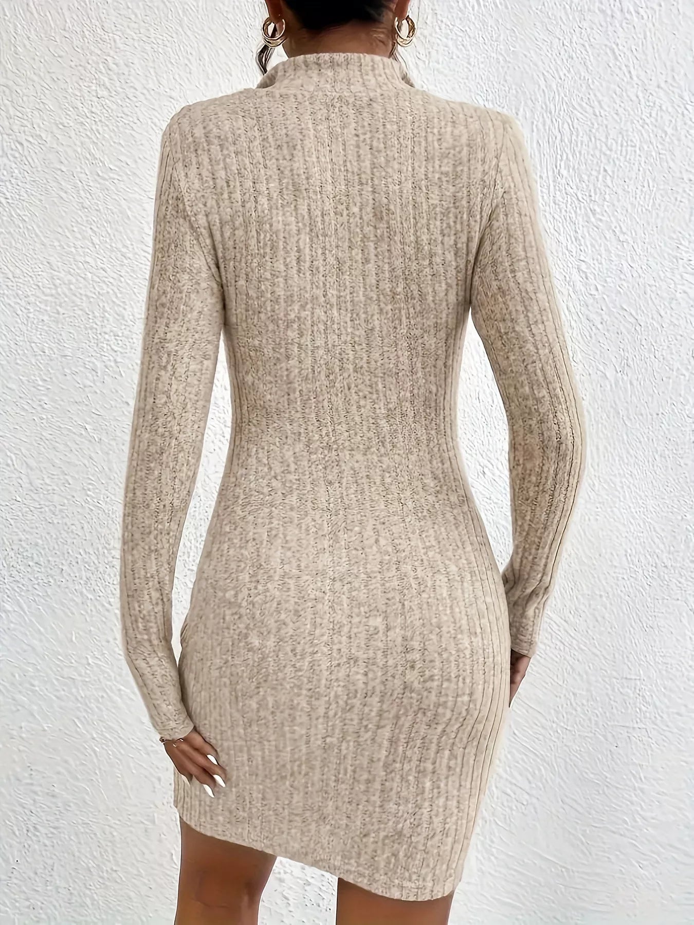 Ribbed Knit Bodycon Mini Dress with Zipper