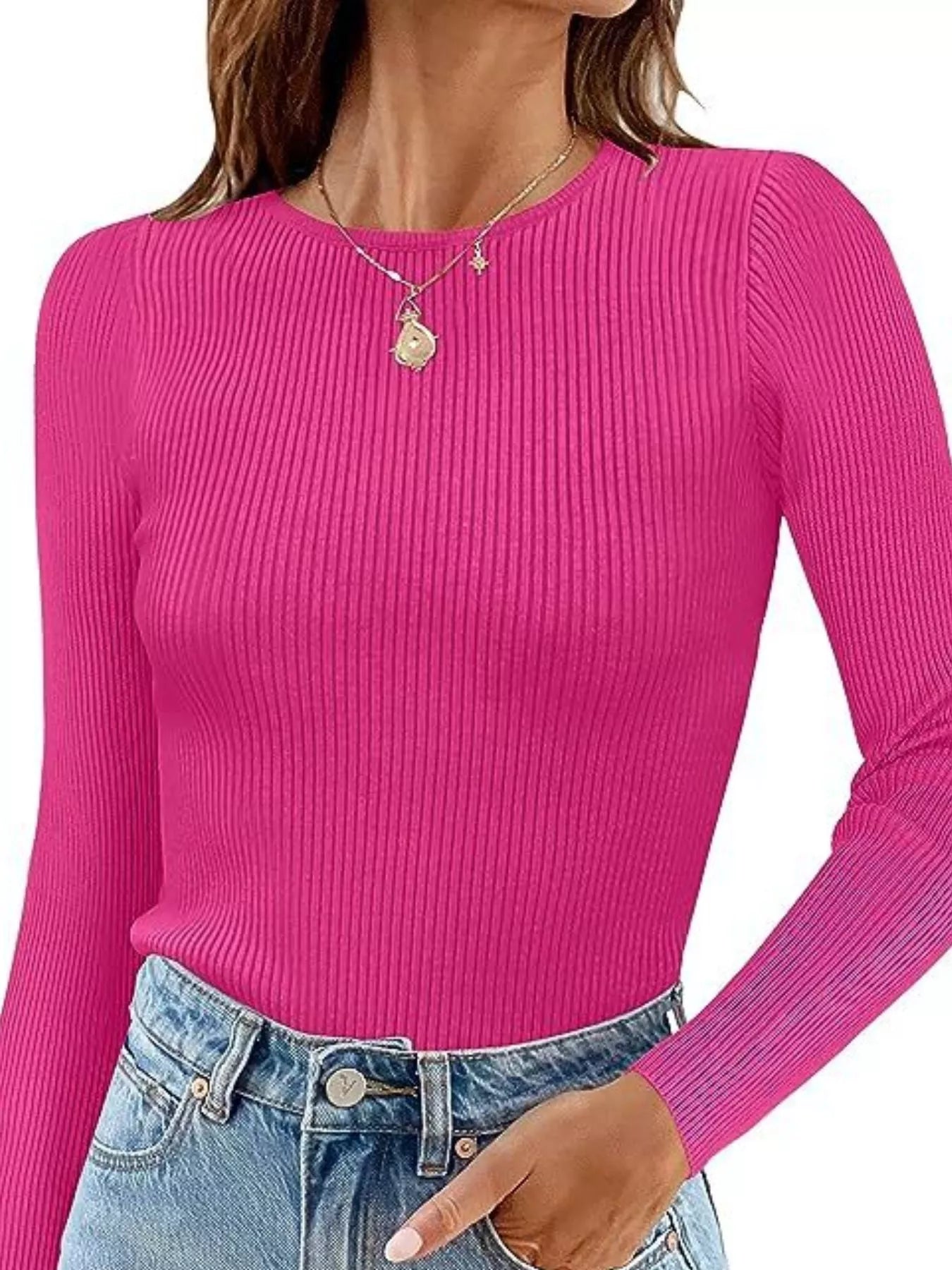 Ribbed Knit Slim Fit Long Sleeve T-Shirt