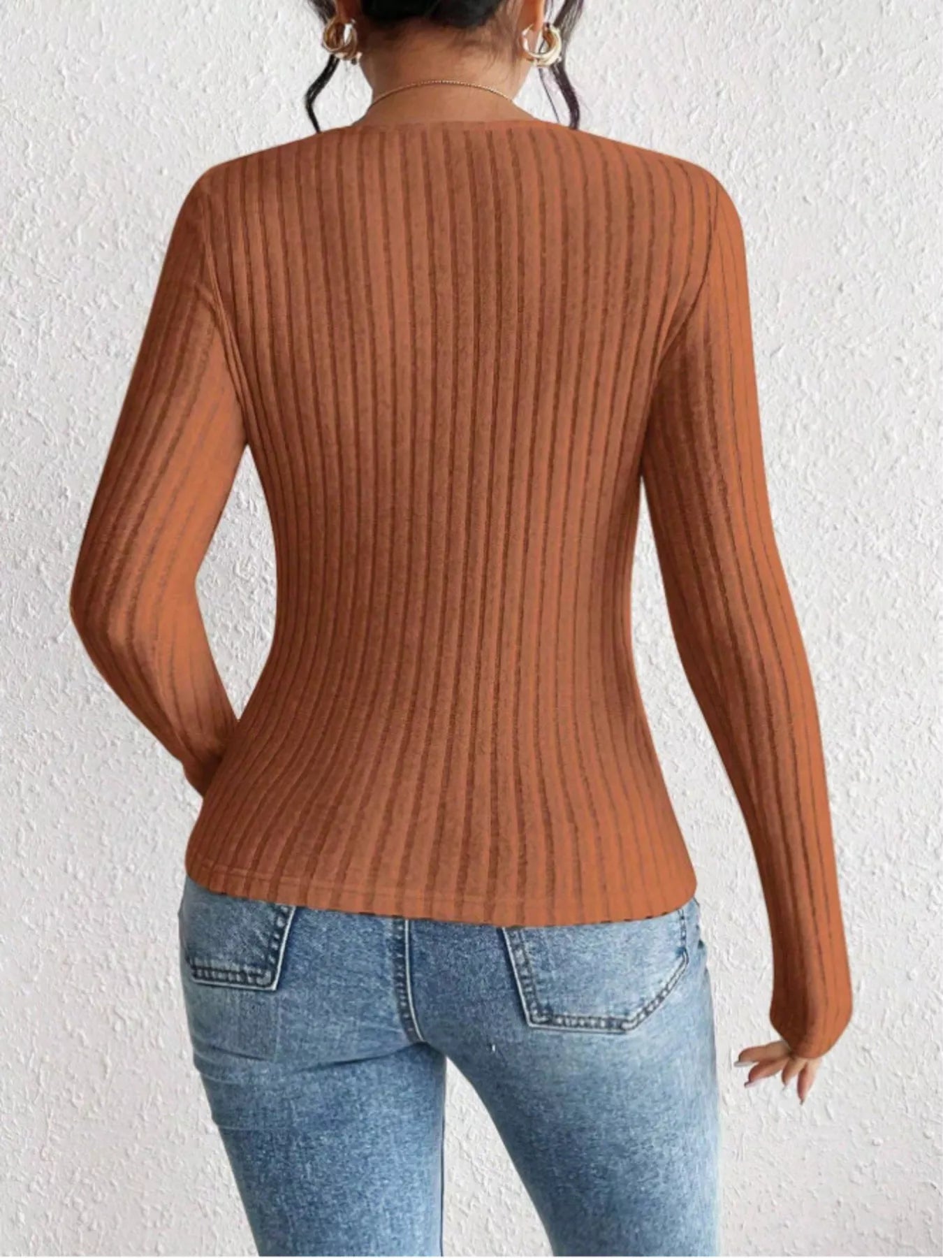 Ribbed Sweetheart Neck Long Sleeve T-Shirt