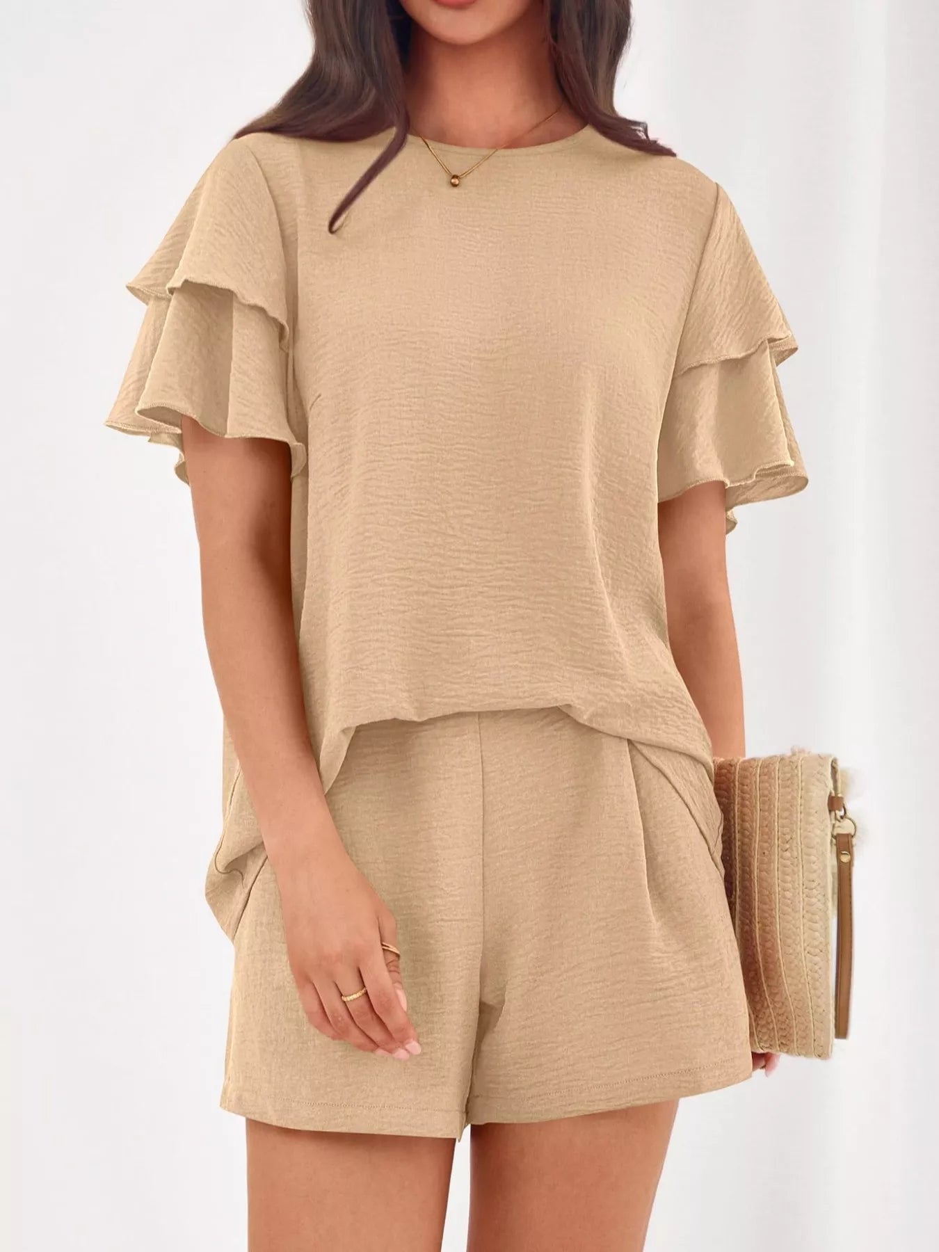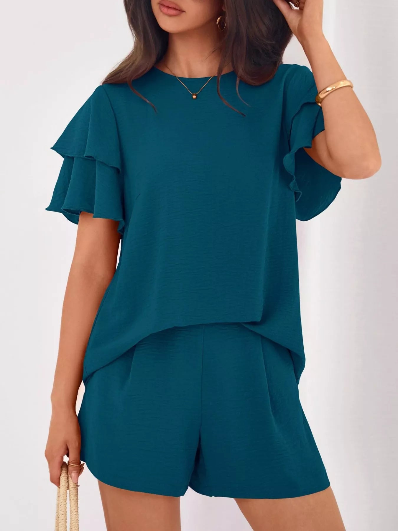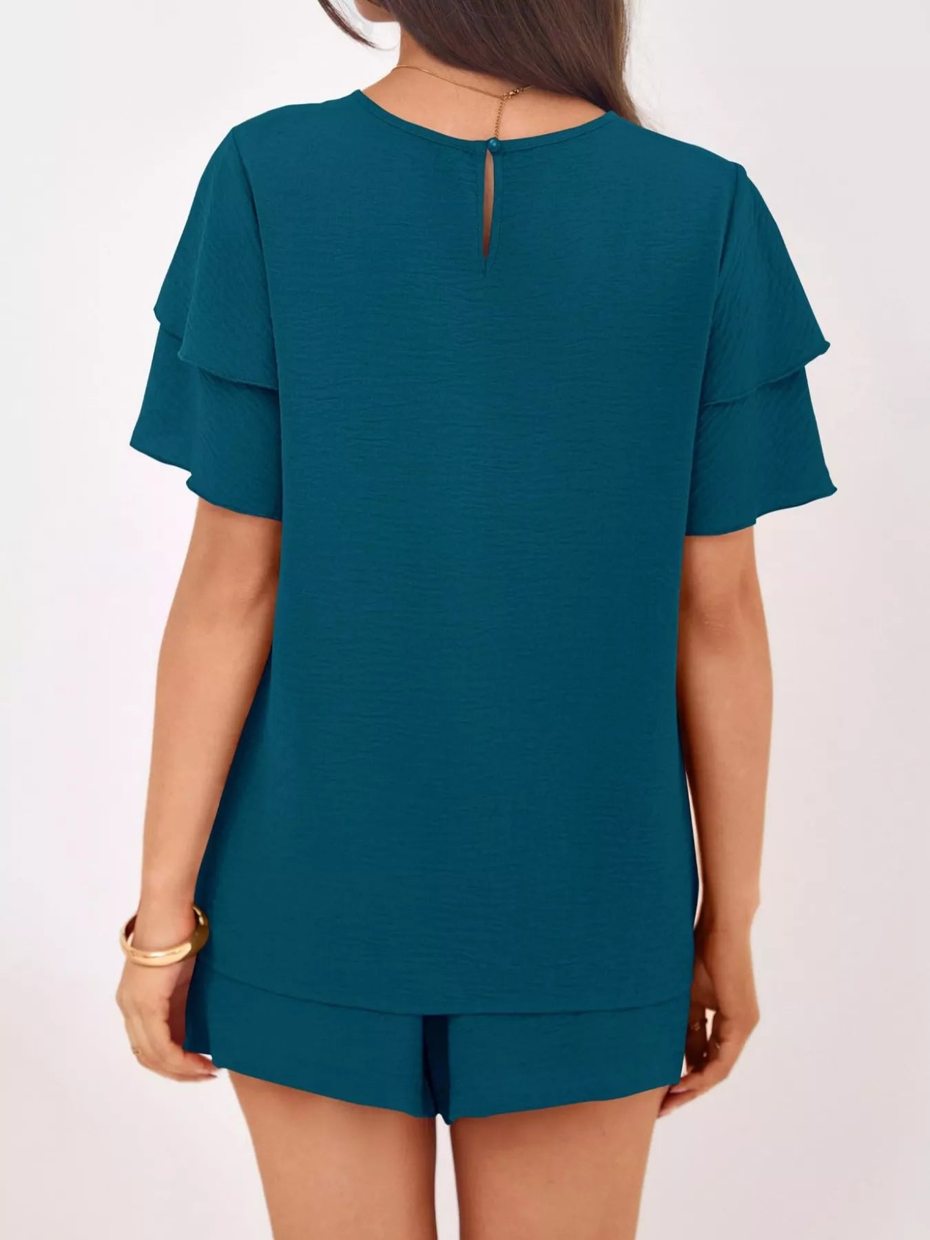 Ruffle Sleeve Top and Shorts Two-Piece Set