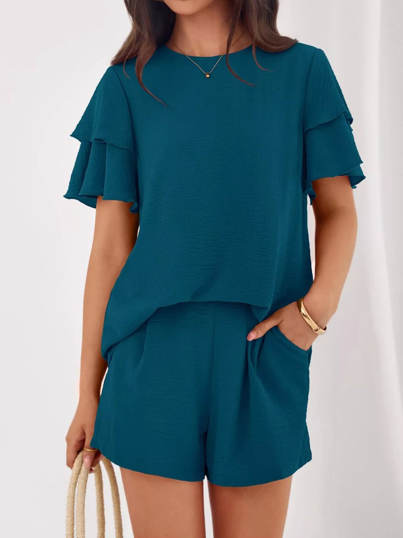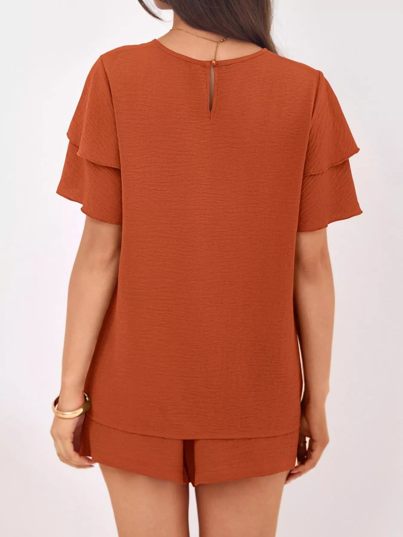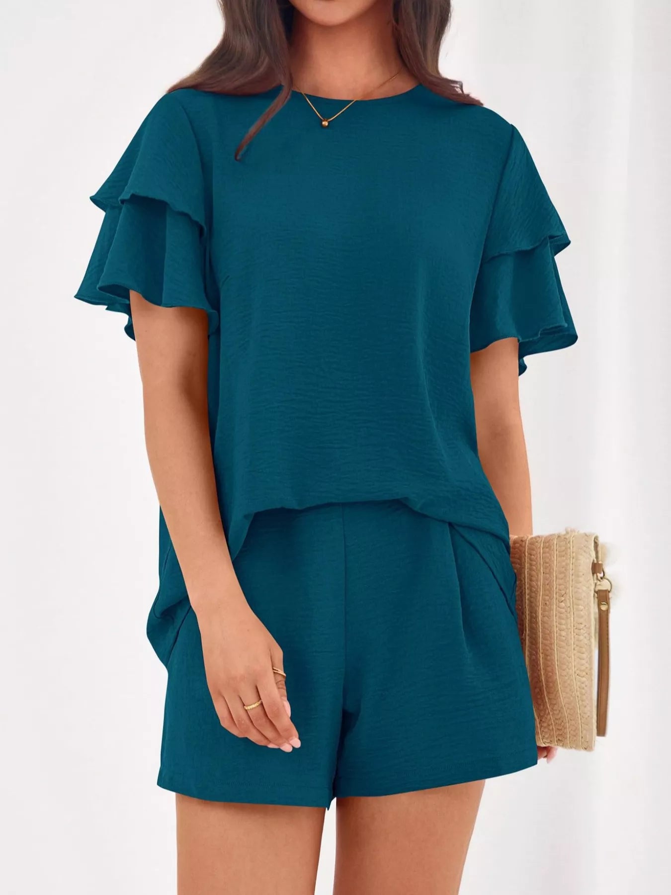 Ruffle Sleeve Top and Shorts Two-Piece Set
