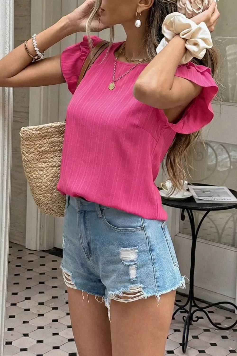 Ruffled Round Neck Blouse